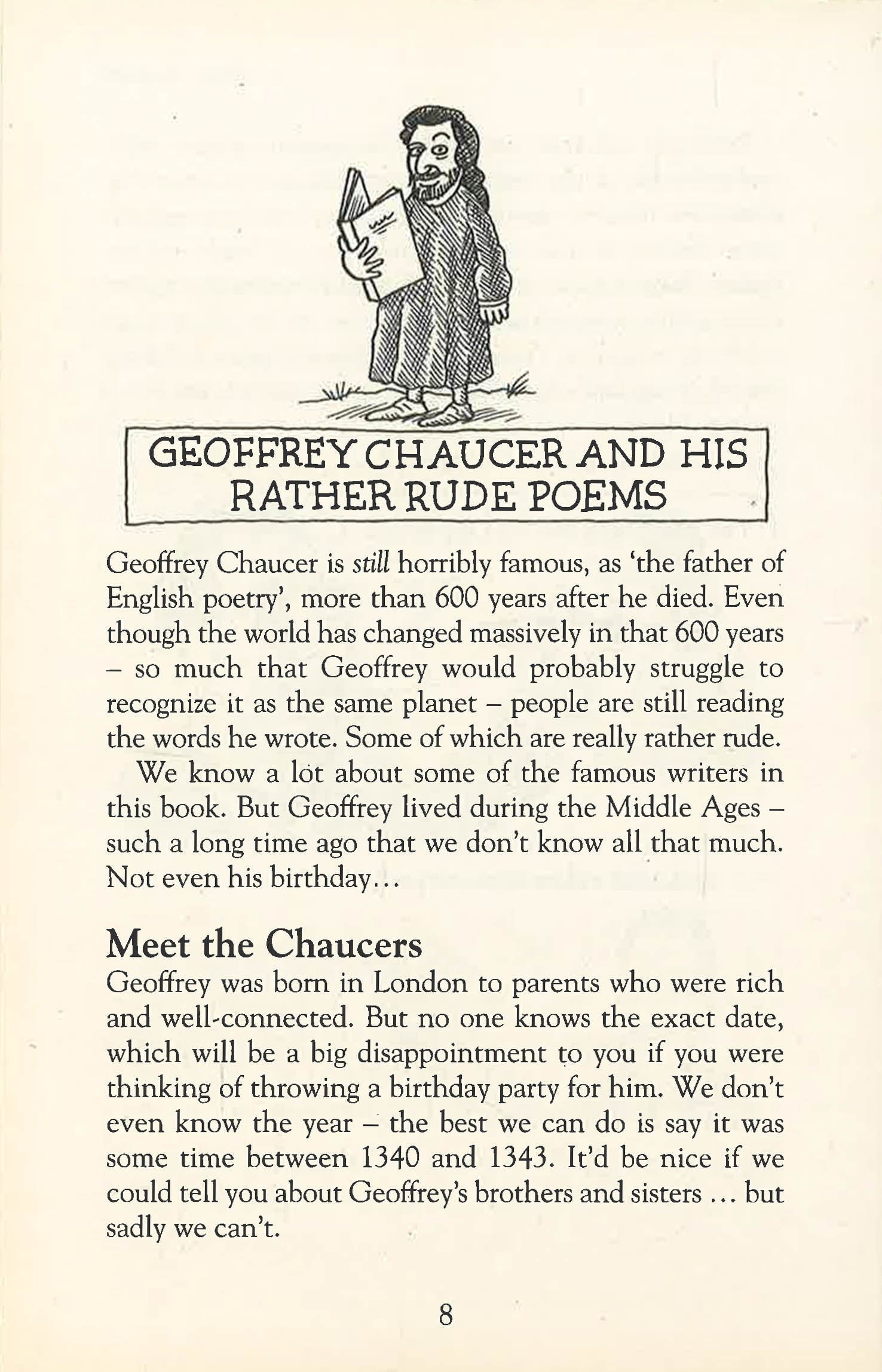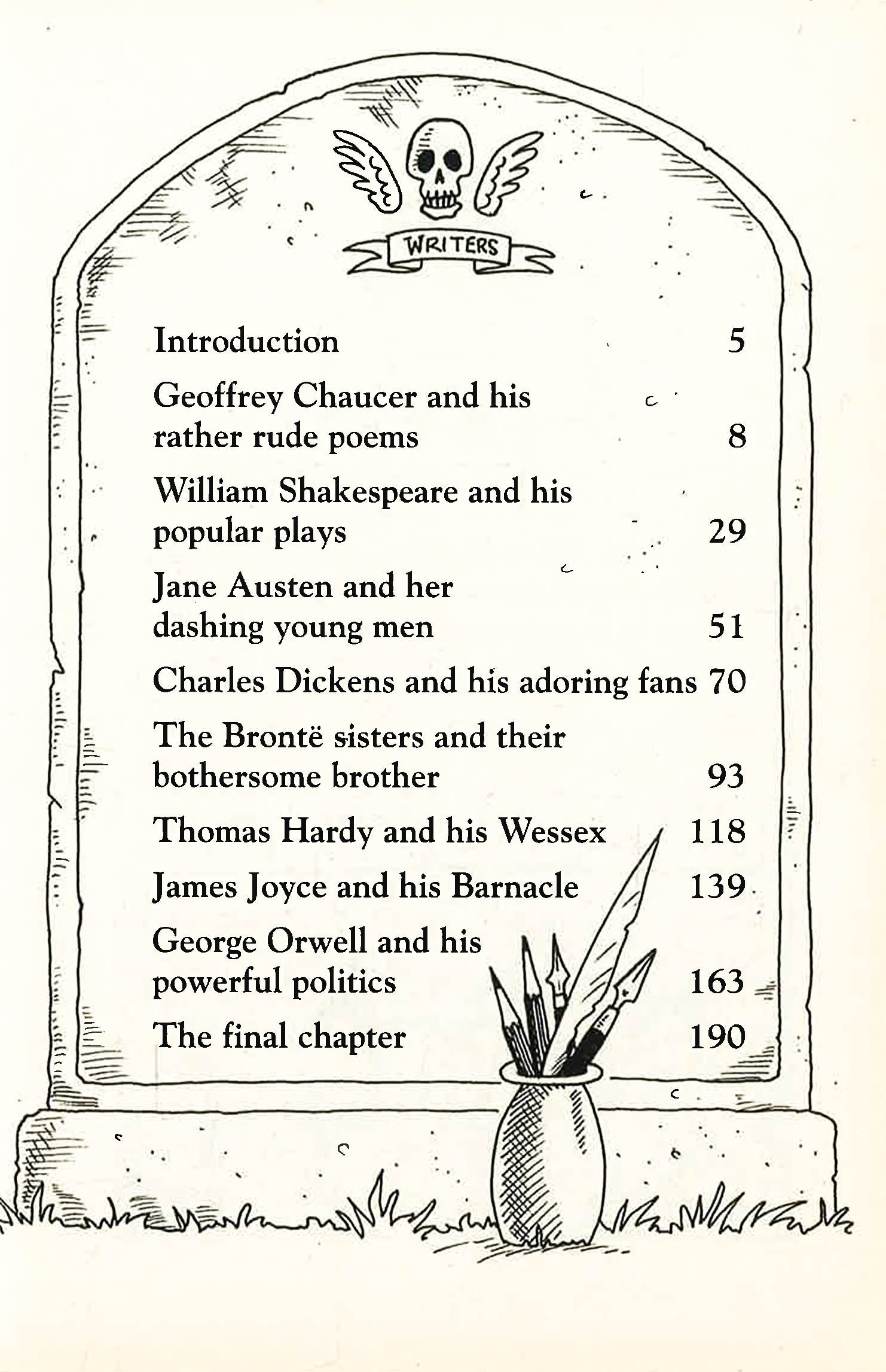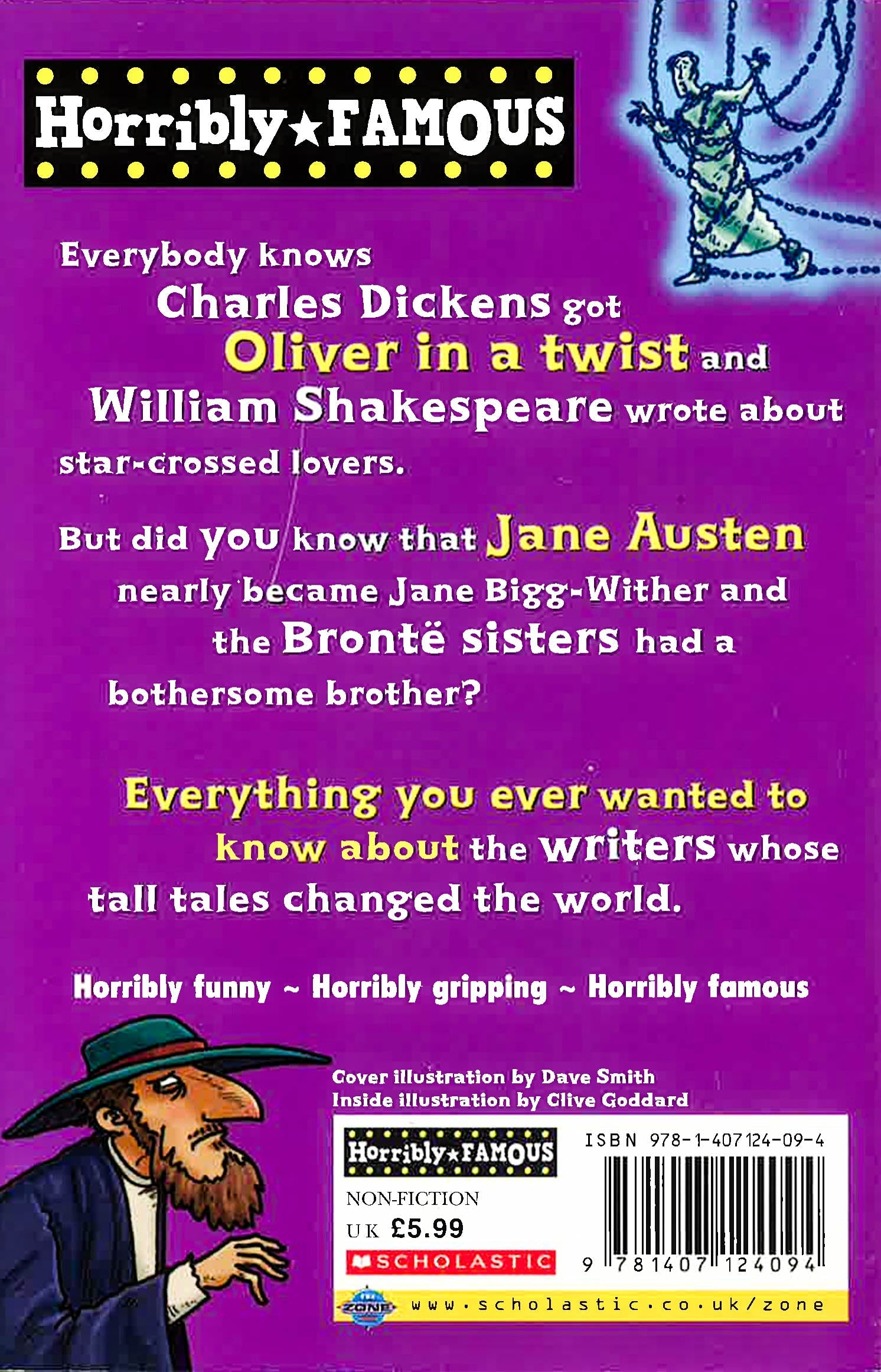 You've probably heard of a few writers: William Shakespeare and his popular plays; Jane Austen and her love stories; Charles Dickens and his big blockbusters. But have you heard that William Shakespeare got mixed up in a plot against the Queen? Jane Austen nearly became a Bigg-Wither? Charles Dickens had his clothes ripped off by his fans? Yes, even when they're dead writers are still full of surprises and the eight in this book are more surprising than most. Now you can get the inside story from their secret diaries, flick through "Good Day!" magazine for some nineteenth-century gossip, and find out all about the writers whose tall tales have changed the world.