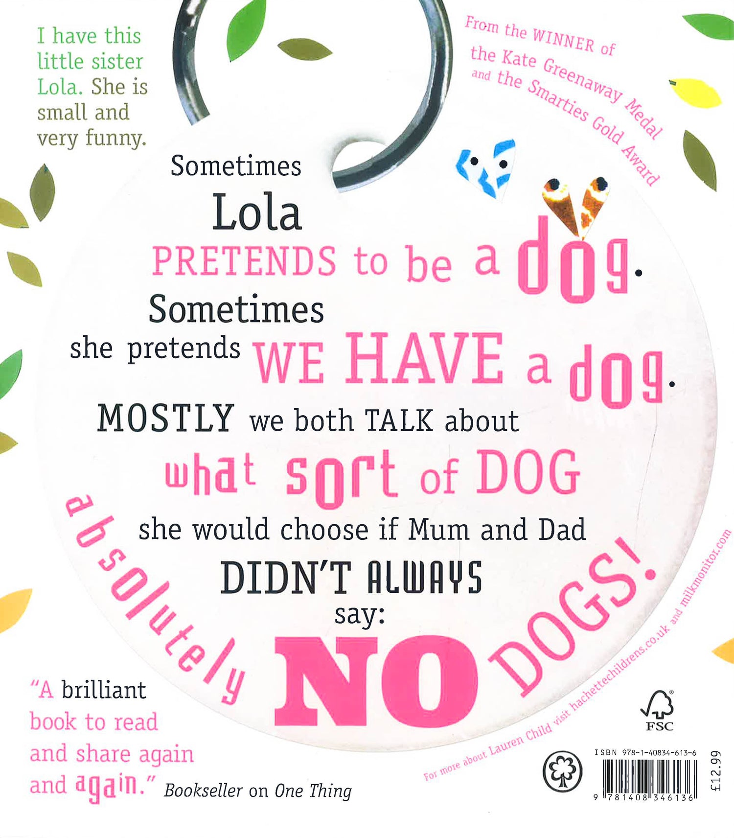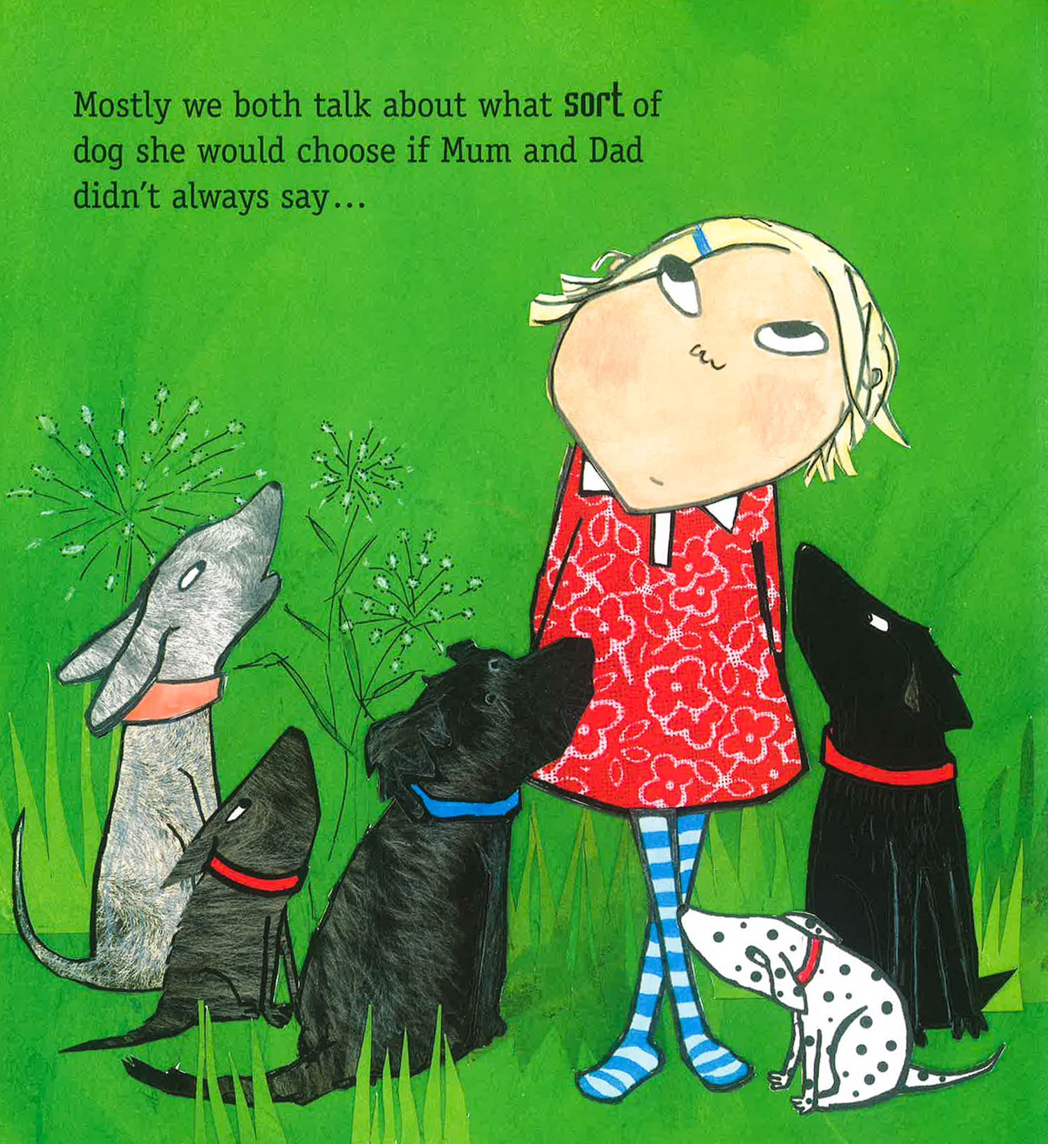 A brilliant Charlie and Lola picture book from multi-award-winning author and Children's Laureate Lauren Child! Lola wants a dog - but the qualities of her perfect pooch seem oddly like those of a ... rabbit! Silly, surprising, thoughtful and fun, Charlie and Lola are on top form in this fantastically funny story, packed full of dogs of every shape, size and colour. Lauren Child's endlessly endearing characters and inimitable humour will be a sure-fire hit with existing and new fans - this is the perfect tale for anyone who has ever imagined what having the perfect pet would be like.A new Charlie and Lola story is the gold standard in picture books - the perfect read-aloud that both children and parents will love. Discover more hilarious original picture books about Charlie and Lola: Charlie and Lola: I Will Not Ever Never Eat a Tomato Charlie and Lola: I Am Not Sleepy and I Will Not Go to Bed Charlie and Lola: I Am Too Absolutely Small for School Charlie and Lola: Slightly Invisible Charlie and Lola: One Thing