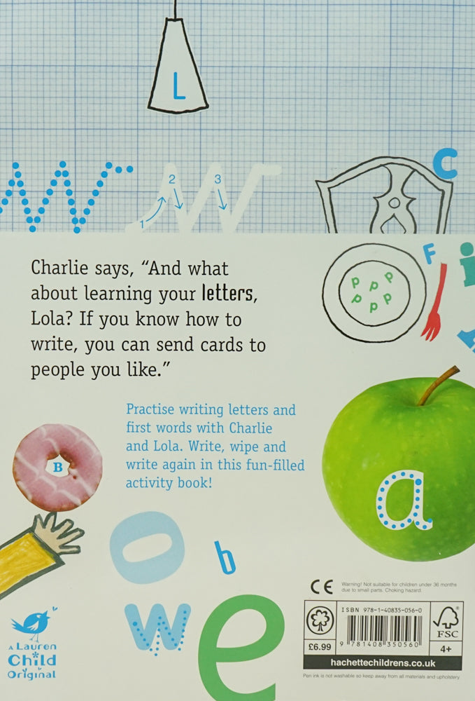 This exciting new strand of Charlie and Lola activity books provides fun and accessiblity across key early years learning topics. From Children's Laureate Lauren Child.Learning can be fun with Charlie and Lola! This wipe-clean activity book is an exciting, new way to engage with early years education - perfect for home-learning. Charlie and Lola explore writing letters and first words using a handy wipe-clean pen to help children practise over and over again. Learn about big and small letters, matching, building and spelling simple words and spotting letters in unusual places!Use the pen to trace and draw letters, then move on to the other letter-based activities. Store the pen within the front cover to ensure it is handy for each time it's needed. From Children's Laureate and Kate Greenaway Medal winner Lauren Child.