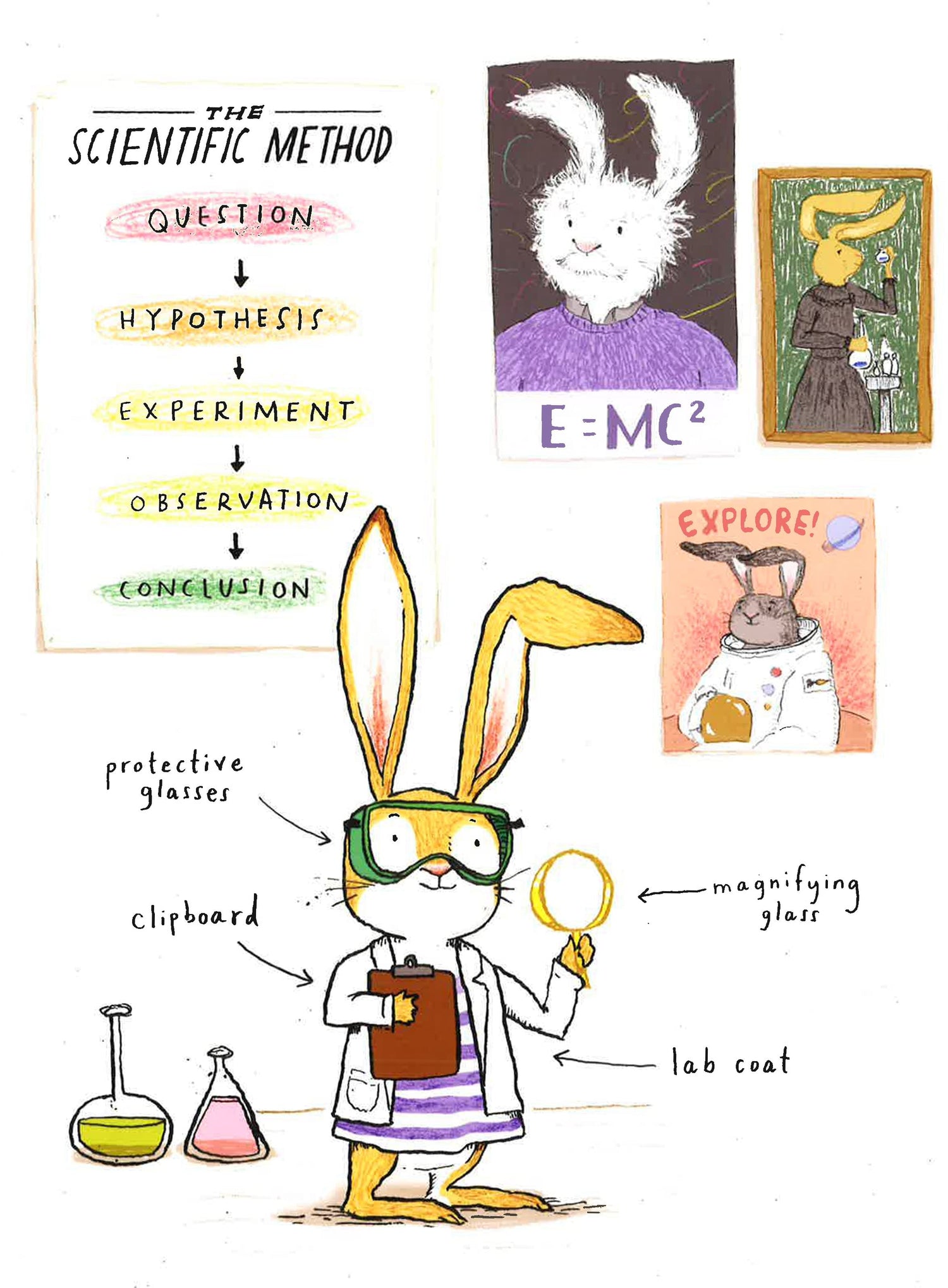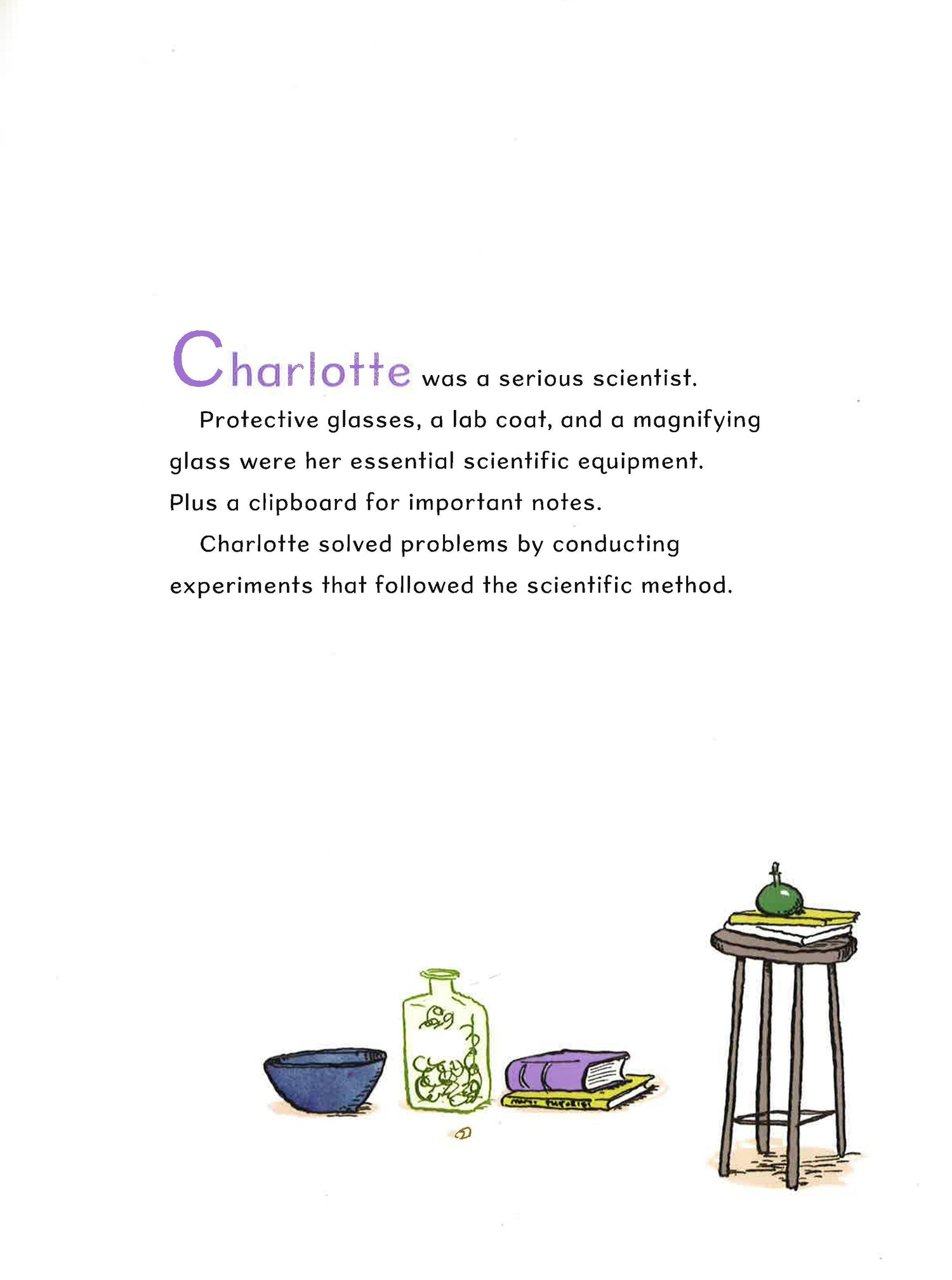 Charlotte is a serious scientist. She solves important problems by following the scientific method. She has all the right equipment: protective glasses, a lab coat, a clipboard, and a magnifying glass. What she doesn't have is space. She has so many brothers and sisters (she is a rabbit, after all) that she is too squished to work on her experiments! Can she use science to solve her problem?