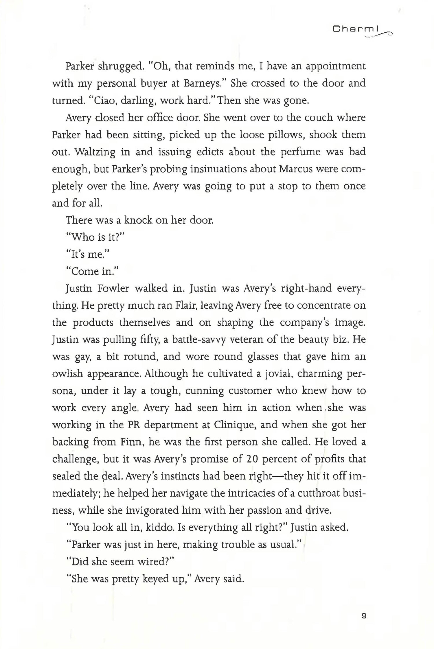 Harley Wilkins is in her prime: 30-years-old, living in Manhattan, and working tirelessly to make her cosmetics company, Flair, a success. As she works to introduce her first perfume, multitudes of complications begin to infiltrate Harley's life. Trying to get things done at work, she constantly has to play babysitter to her partner Parker, who is little more than a partying socialite who used her nepotism to get undeserved equal-footing with Harley at the top of the company. She relies on the comic relief and smart perspective of her delightfully flamboyant friend, confidante, and co-worker Justin who helps Harley keep her head on straight amidst the drama that is her life. After being informed by a gleeful Parker of her boyfriend Marcus' infidelity, Harley meets the intriguing and successful Brad-but her hope for pleasurable preoccupation is extinguished when she is confronted with a startling truth about the woman she had always believed to be her mother.