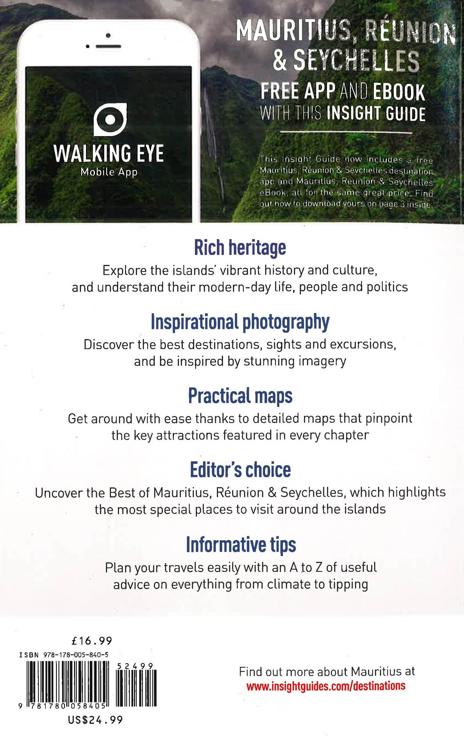 * Insight Guide Mauritius, Reunion and Seychelles is ideal for travellers seeking immersive cultural experiences, from exploring La'Hermitage, to discovering Bird Island