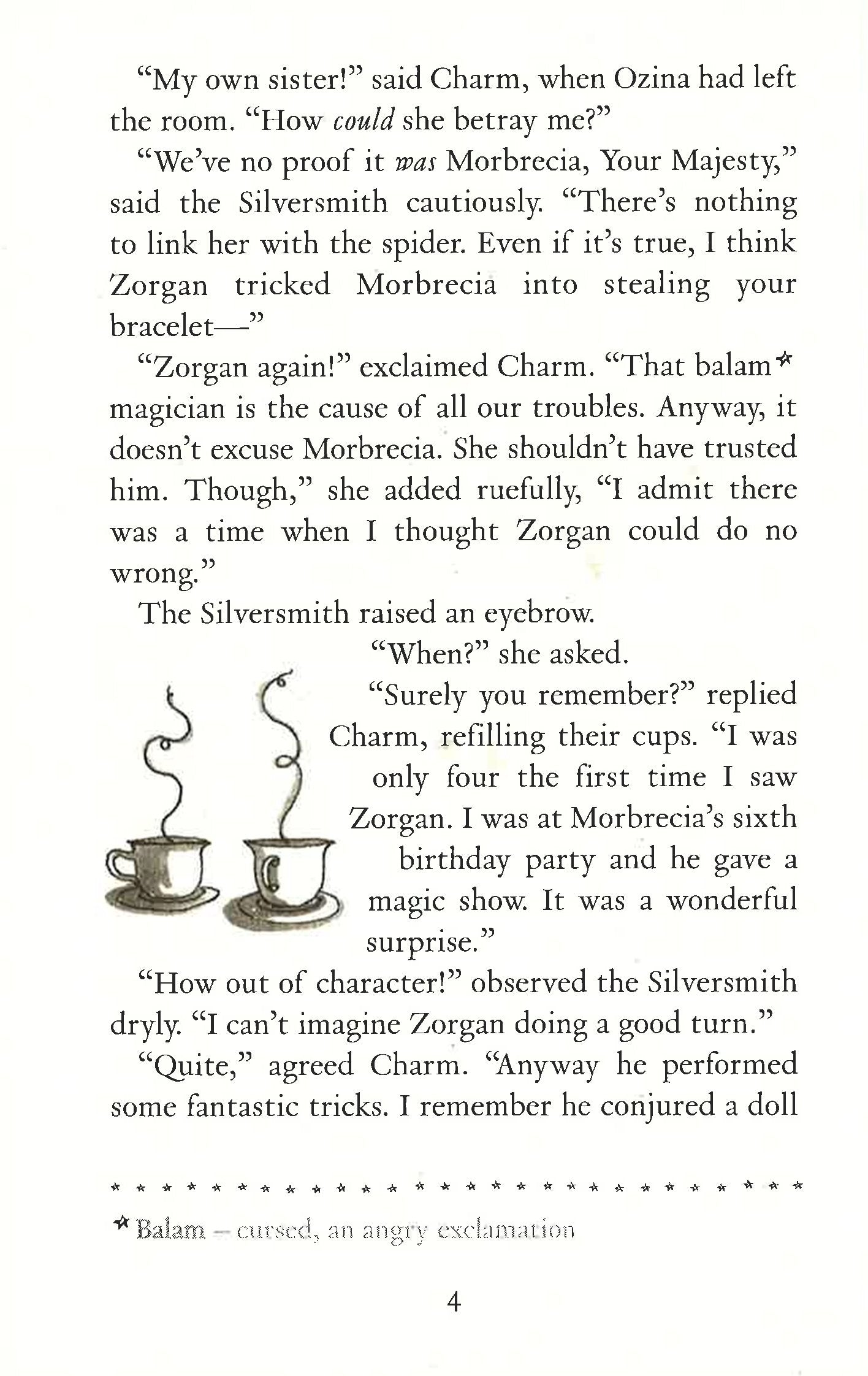 Ses, Maddy , Gemma are being photographed with their favourite girl-band when they flash through the stars to Karisma. As they search for the cat charm Maddy is blown over a cliff edge, and the girls learn why Morbrecia is so jealous of Charm. Charmingly written stories, appealing characters, and a beautifully imagined world with its own language.