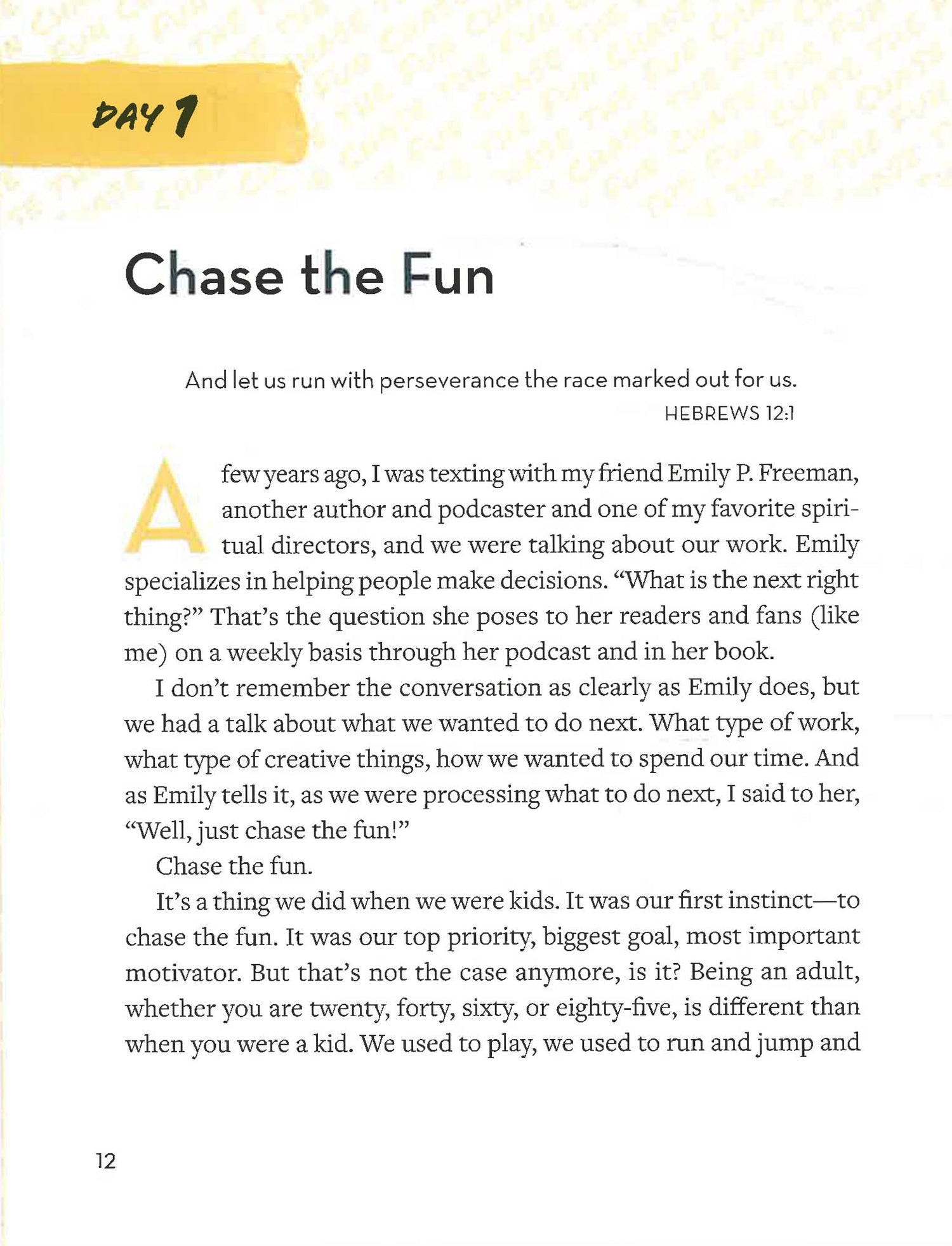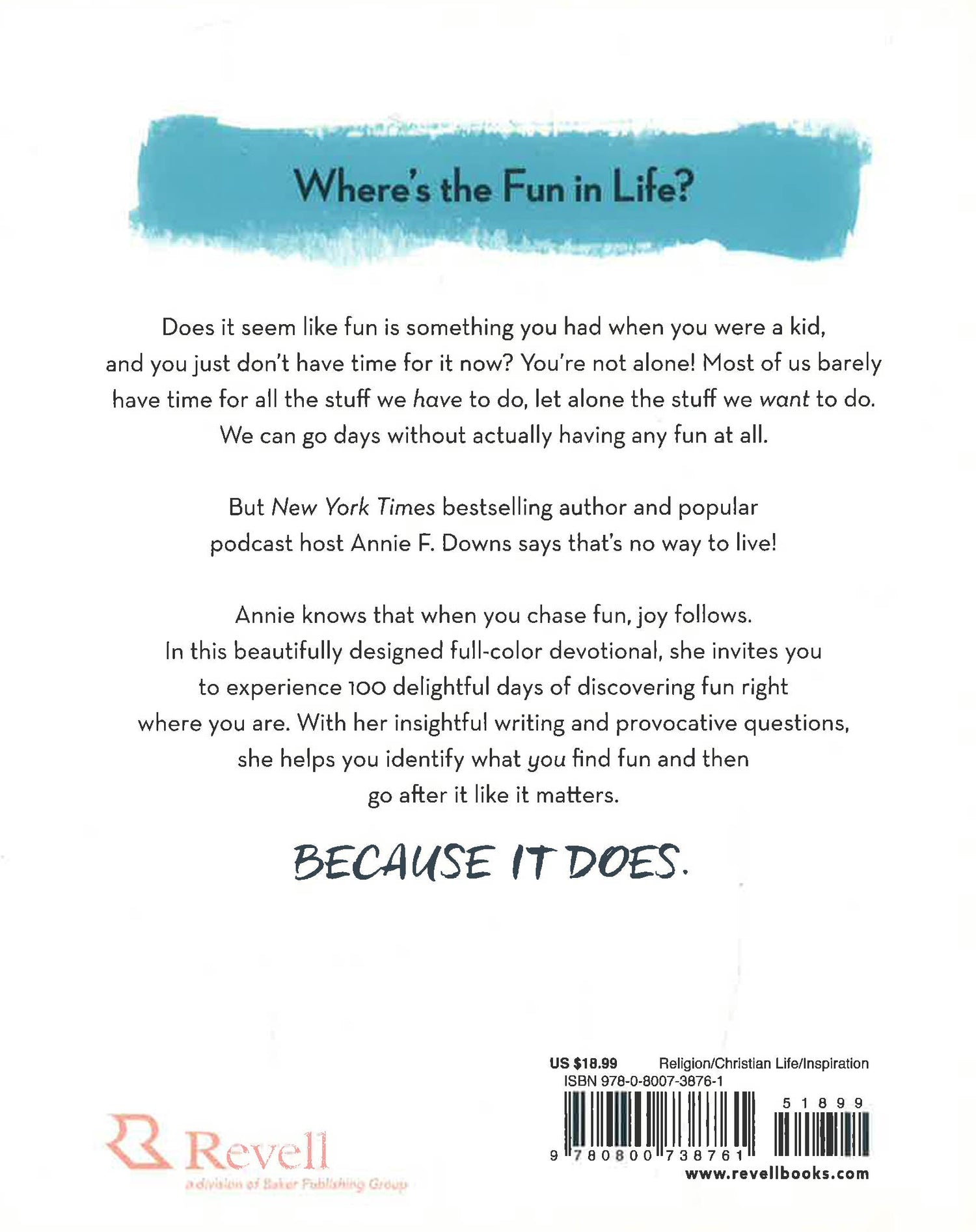 Where is the fun in life? How do we find it? What does it look like? With her signature hope and humor, New York Times bestselling author Annie F. Downs invites you to join her for 100 ways to chase the fun available to you, and experience God's goodness along the way. Full-color with a ribbon marker.