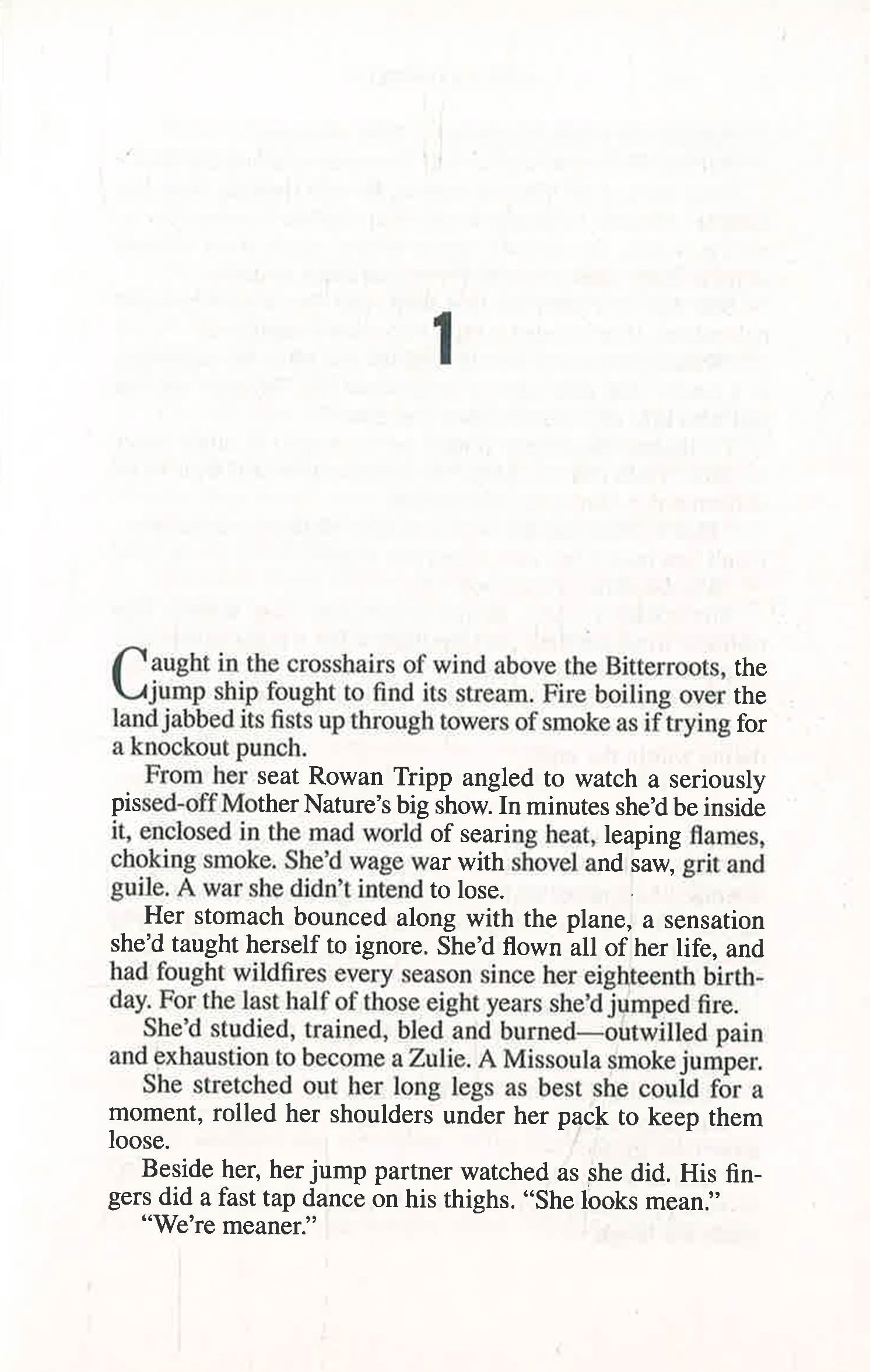 Little else in life is as dangerous as fire jumping. But there's also little else as thrilling--at least to Rowan Tripp. Being a Missoula smoke jumper is in Rowan's blood: her father is a legend in the field. At this point, returning to the wilds of Montana for the season feels like coming home--even with reminders of the partner she lost last season still lingering in the air.