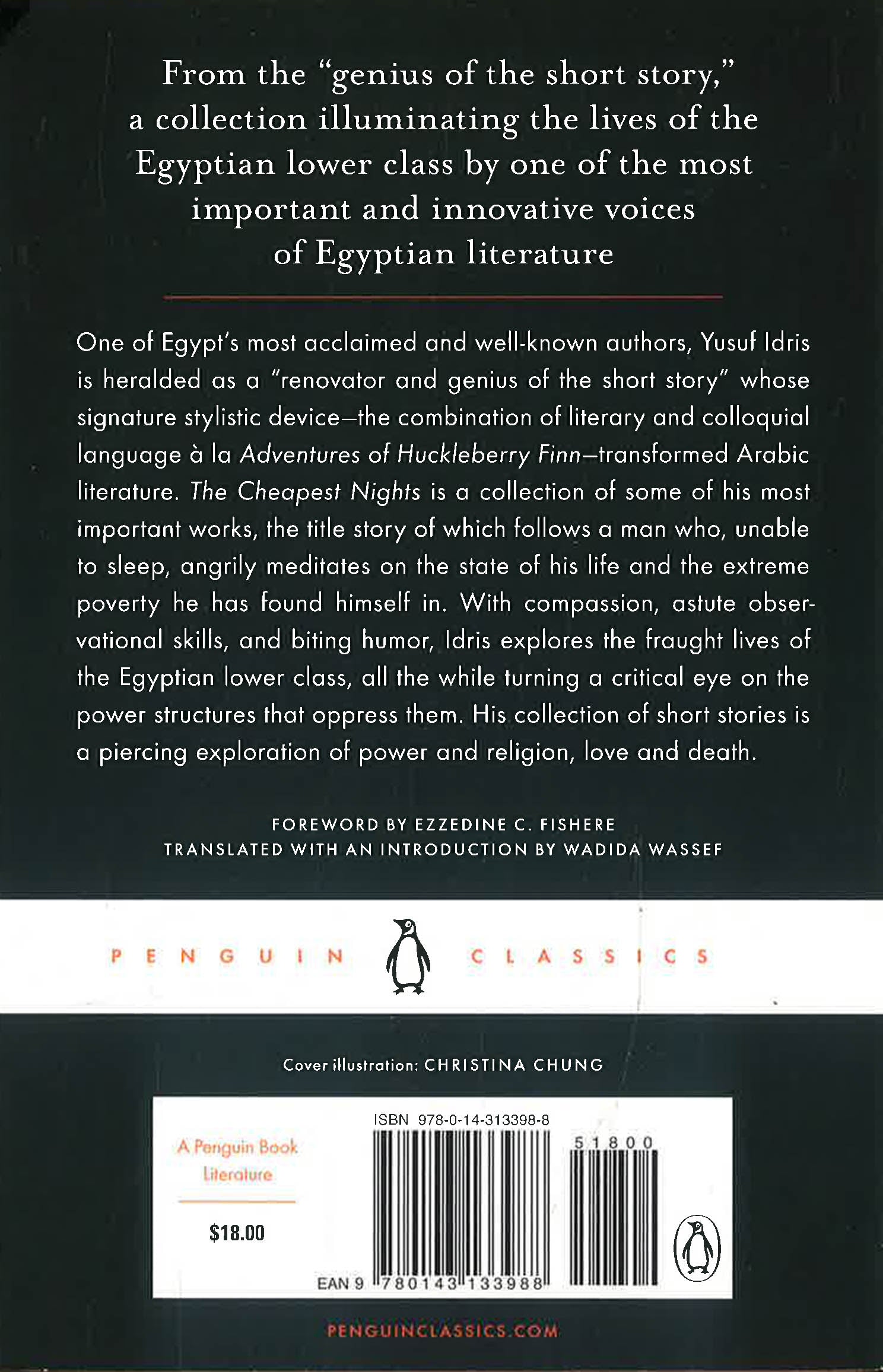 One of Egypt's most acclaimed and well-known authors, Yusuf Idris is heralded as a "renovator and genius of the short story" whose signature stylistic device--the combination of literary and colloquial language à la Huckleberry Finn--transformed Arabic literature. The Cheapest Nights is a collection of some of his most important works, the title story of which follows a man who, unable to sleep, angrily meditates on the state of his life and the extreme poverty in which he finds himself. With compassion, astute observational skills, and biting humor, Idris explores the fraught lives of the Egyptian working class, all the while turning a critical eye on the power structures that oppress them. His collection of short stories, with a foreword by author Ezzedine C. Fishere, is a piercing exploration of power and religion, love and death.