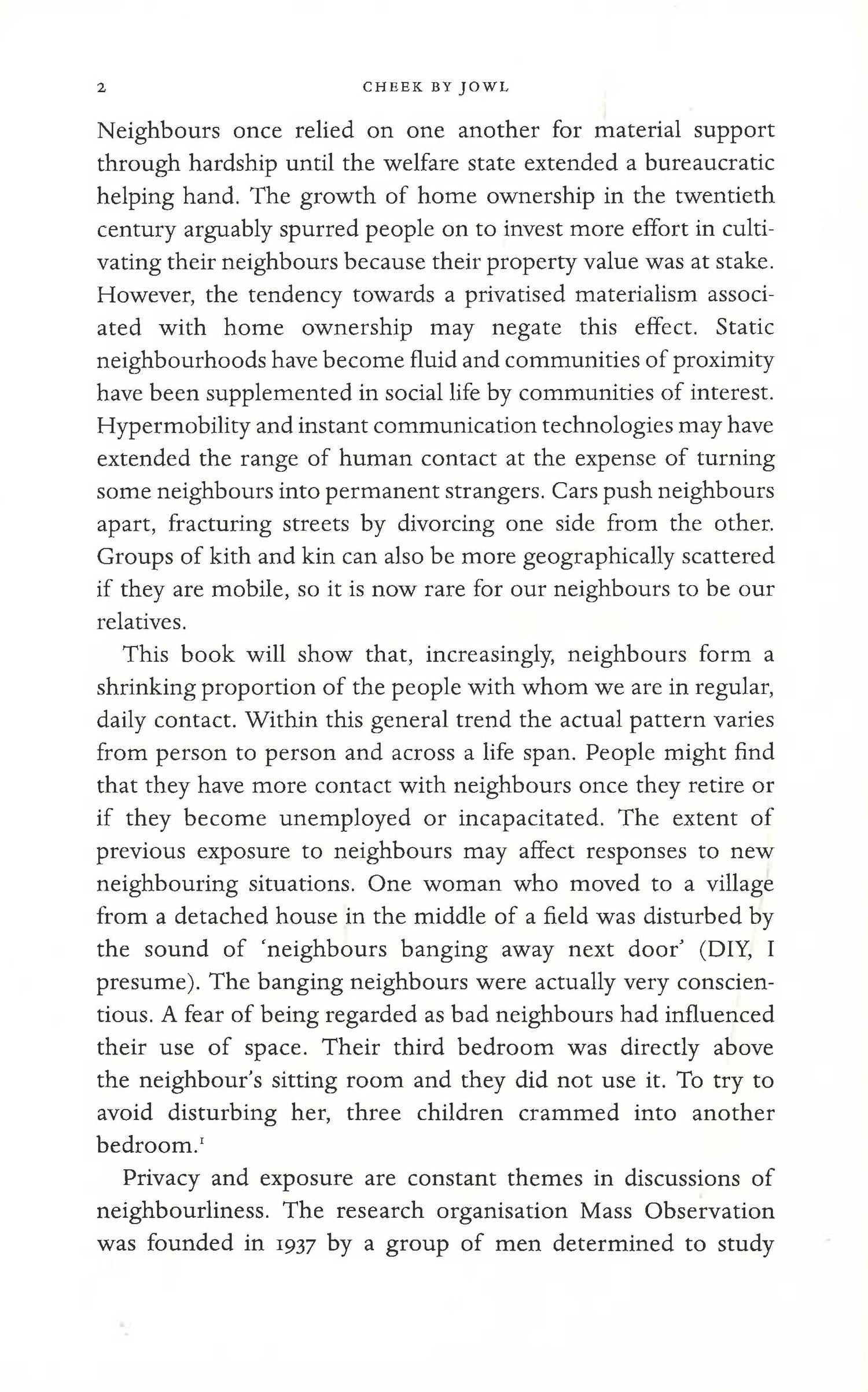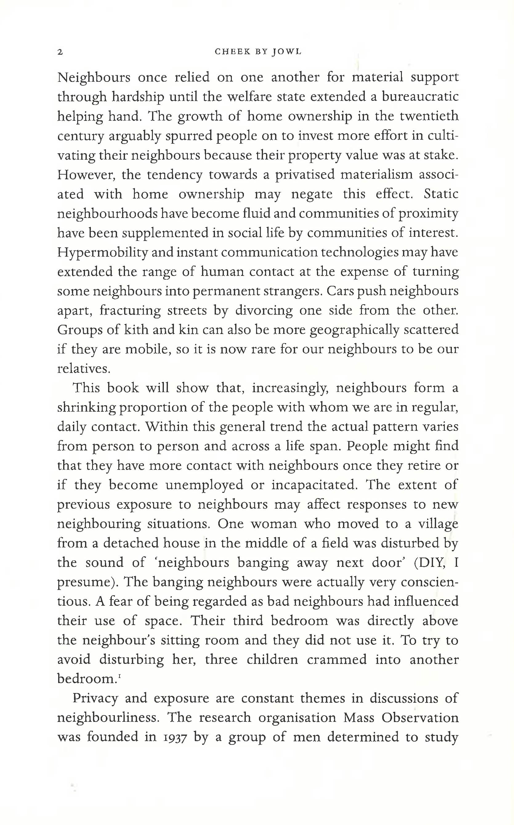 Almost everyone has a neighbour. Neighbours can enrich or ruin our lives. They fascinate and worry us in equal measure. Soap operas watched by millions play with every lurid permutation of relationships in fictional neighbourhoods. One is even called Neighbours. Disputes over gigantic Leylandii and noise nuisance turn nasty and fill newspaper columns. These stories have a rich history - as long as men have lived in shelters, they have had neighbours. In this fascinating social history, Emily Cockayne traces the story of the British neighbour through nine centuries - spanning Medieval, Tudor and Victorian periods, two world wars and up to today's modern, virtual world. "Cheek by Jowl" brilliantly reveals how neighbour relations have changed over time and maps the complex emotional, sexual and economic threads of association between neighbours. As people lived more densely together, and lifestyles diversified, the potential for neighbour nuisance and jealousy grew. In contrast, where communities of people emerged who shared an employer or an economic predicament, solidarity and mutual supportiveness would ease the hardships of life. "Cheek by Jowl" will also examine the way we think about architecture and our living spaces. It treats houses as vessels for living that enable or frustrate us from fulfilling our human potential rather than as aesthetic objects. With humour, wit and fascinating historical anecdotes this is social history at its most colourful and interesting. "Cheek by Jowl" will put the people back in the houses and the houses back on the streets.