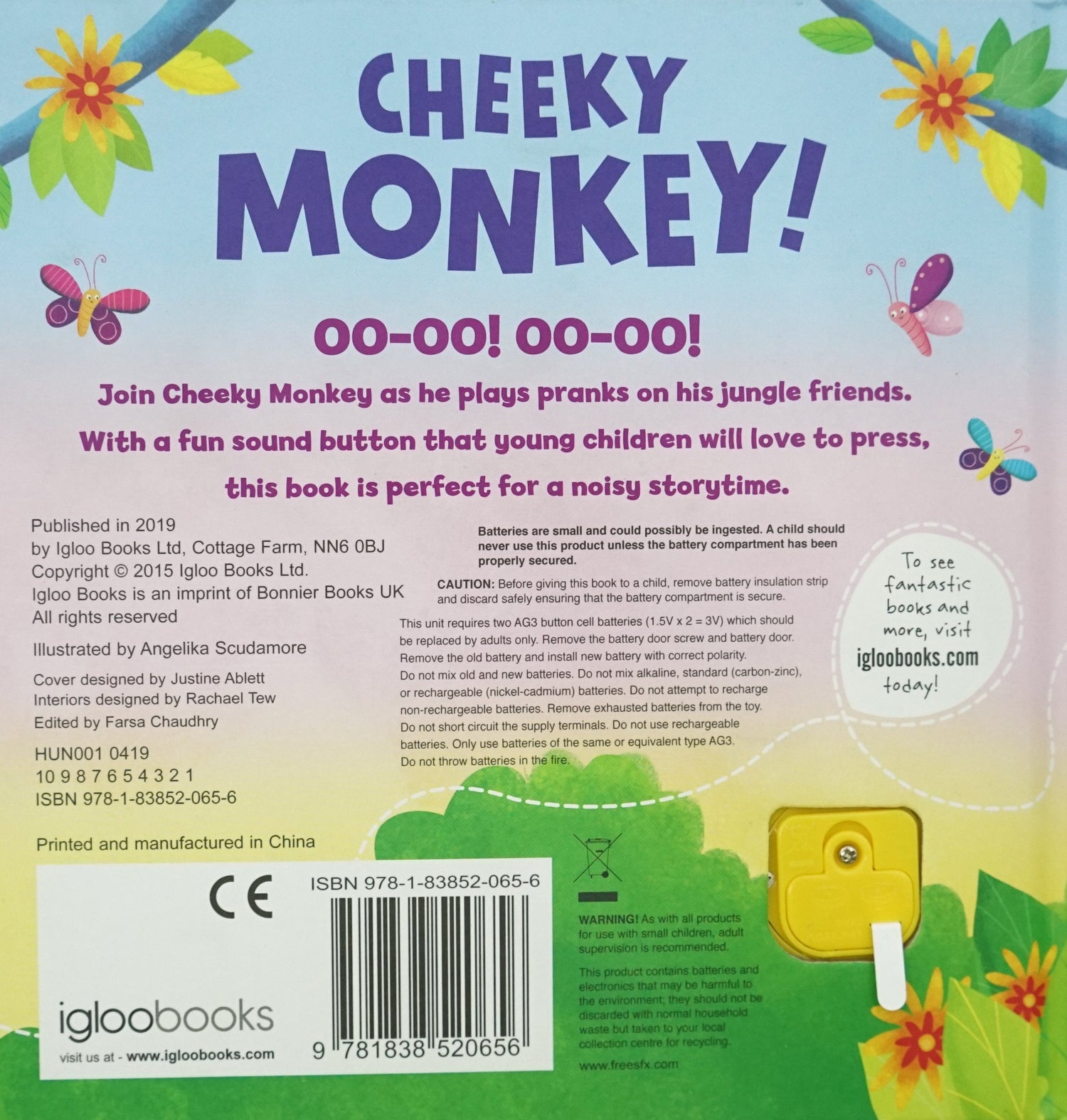 Join Cheeky Monkey as he plays pranks on his jungle friends. With a fun sound button that young children will love to press, this book is perfect for a noisy storytime.