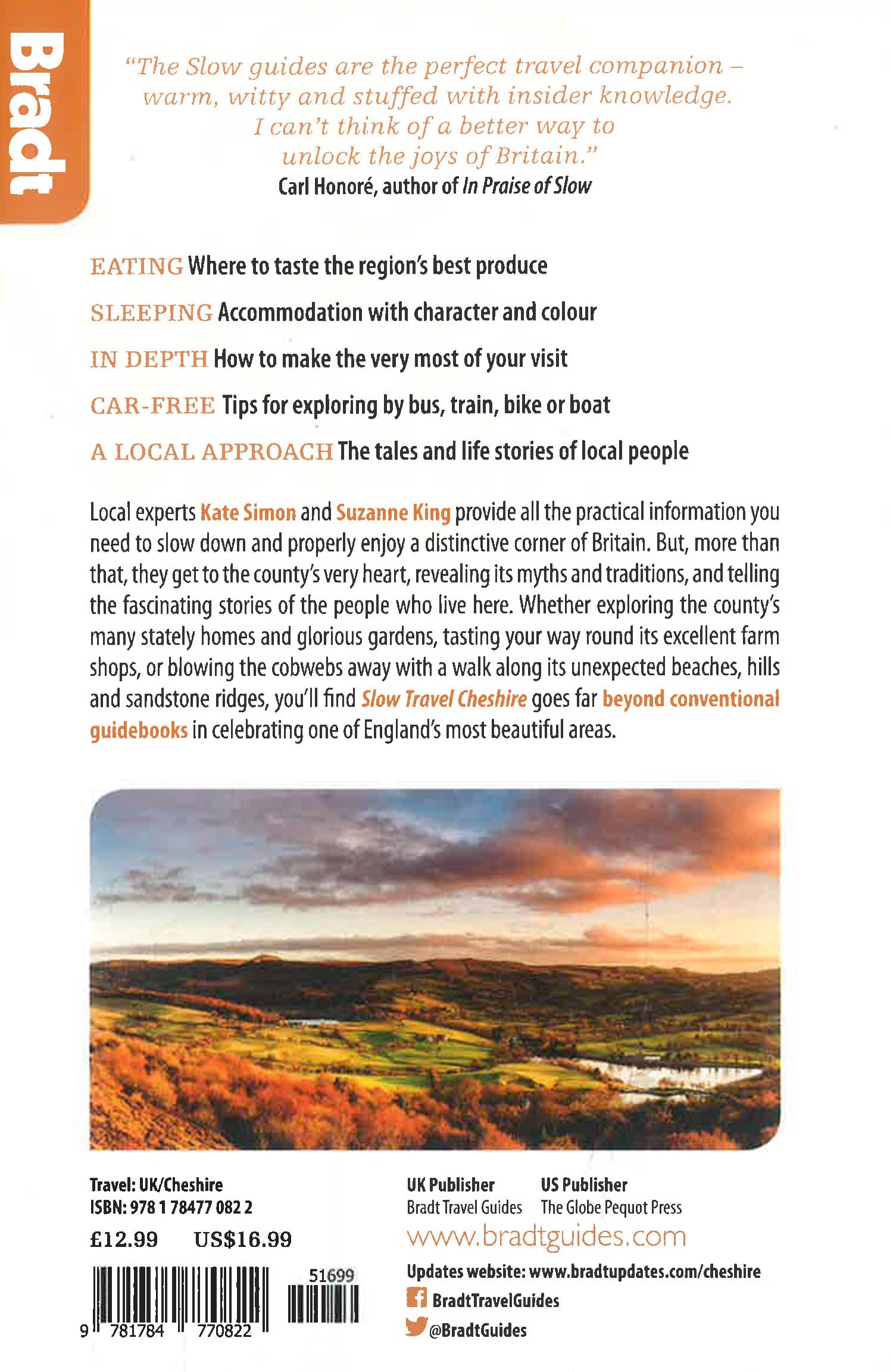 This brand new title in Bradt's acclaimed UK regional Slow series is the only full guide to Cheshire, a county known for its abundance of black-and-white timbered buildings and which was put firmly on the map in the 1990s thanks to then-resident stars Posh and Becks. Cheshire is a county that confounds expectations, from the Cheshire Plain to the hills and moors of the Pennines and Peak District in the east and surprisingly dramatic sandstone ridges in the west, not to mention the Wirral Peninsula, flanked by the major estuaries of the rivers Mersey and Dee flowing into the Irish Sea. Home to premier league footballers it may be, but it is also a largely rural landscape and an area of farm shops, forests and falconries; meres, marinas and marshes. There is industrial and scientific heritage, too, ranging from Bronze-Age mining sites to the internationally important astronomical observatory and mighty Lovell Telescope at Jodrell Bank. With this new Bradt guide, discover all of this and more: the county town of Chester with its fascinating Roman history, unique double-decker medieval shopping arcades and the most complete city walls in Britain; ruins of ancient castles; and reminders of the salt and silk industries that have been so important in the past. For a truly slow experience, Cheshire also offers a network of canals, perfect for waterside strolls or pootling along in a narrowboat, while Bradt's Slow Cheshire details information for walkers and cyclists, too. Also included in this guide are gardens and parks, grand stately homes and structural legacies of the past (such as Port Sunlight), engaging museums, attractions and events. Local food and drink is covered, along with all types of accommodation, from B&Bs and self-catering cottages to guesthouses and hotels.