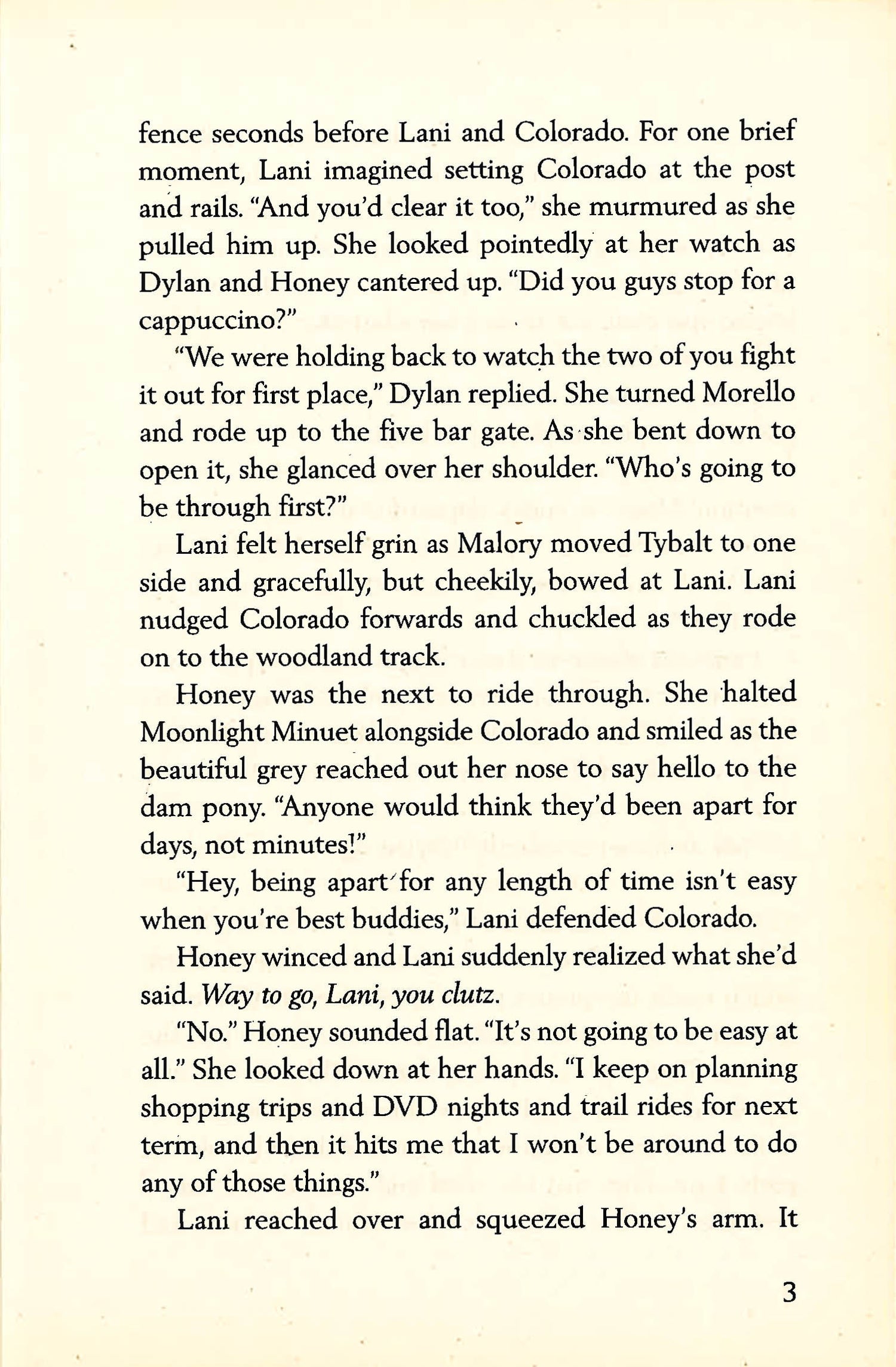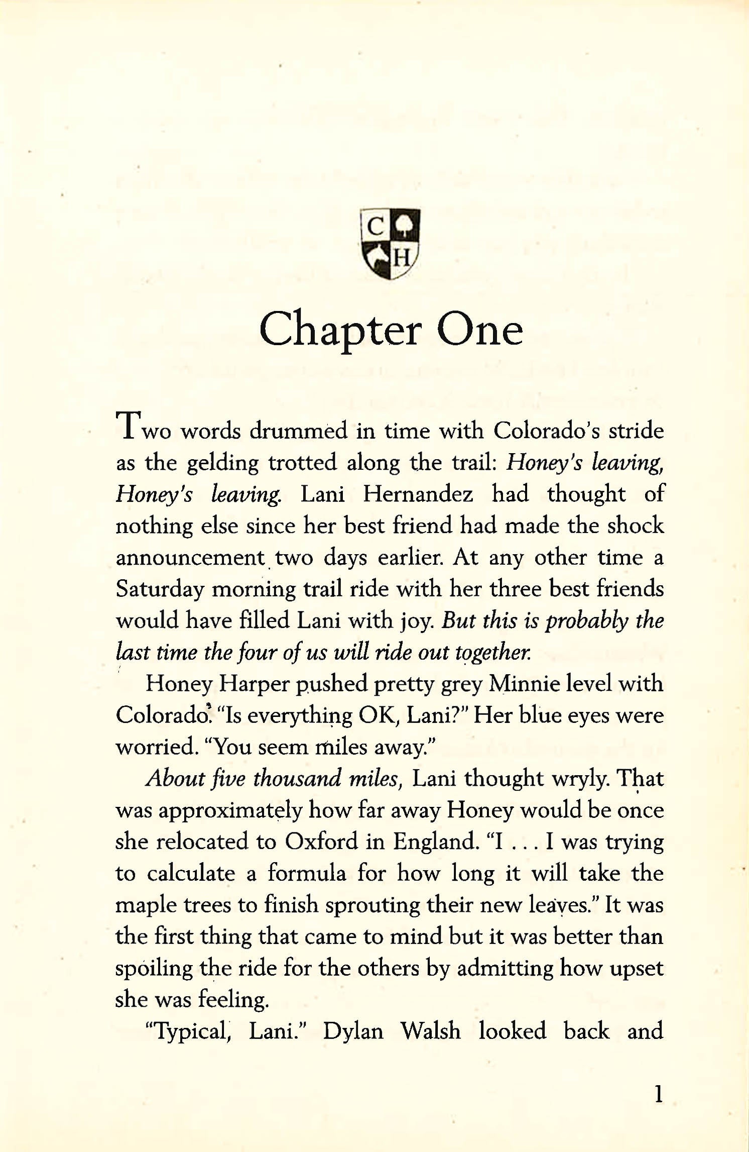 Friendship, riding ... and rivalry Welcome to Chestnut Hill, an American boarding school where riding is every girl's favourite subject and a love of horses puts you top of the class. Lani wishes her best friend Honey didn't have to move back to England. What will Chestnut Hill be like without her?Friendship, riding ...and rivalry Welcome to Chestnut Hill, an American boarding school where riding is every girl's favourite subject and a love of horses puts you top of the class. Lani wishes her best friend Honey didn't have to move back to England. What will Chestnut Hill be like without her? There must be a way to keep their friendship on track...