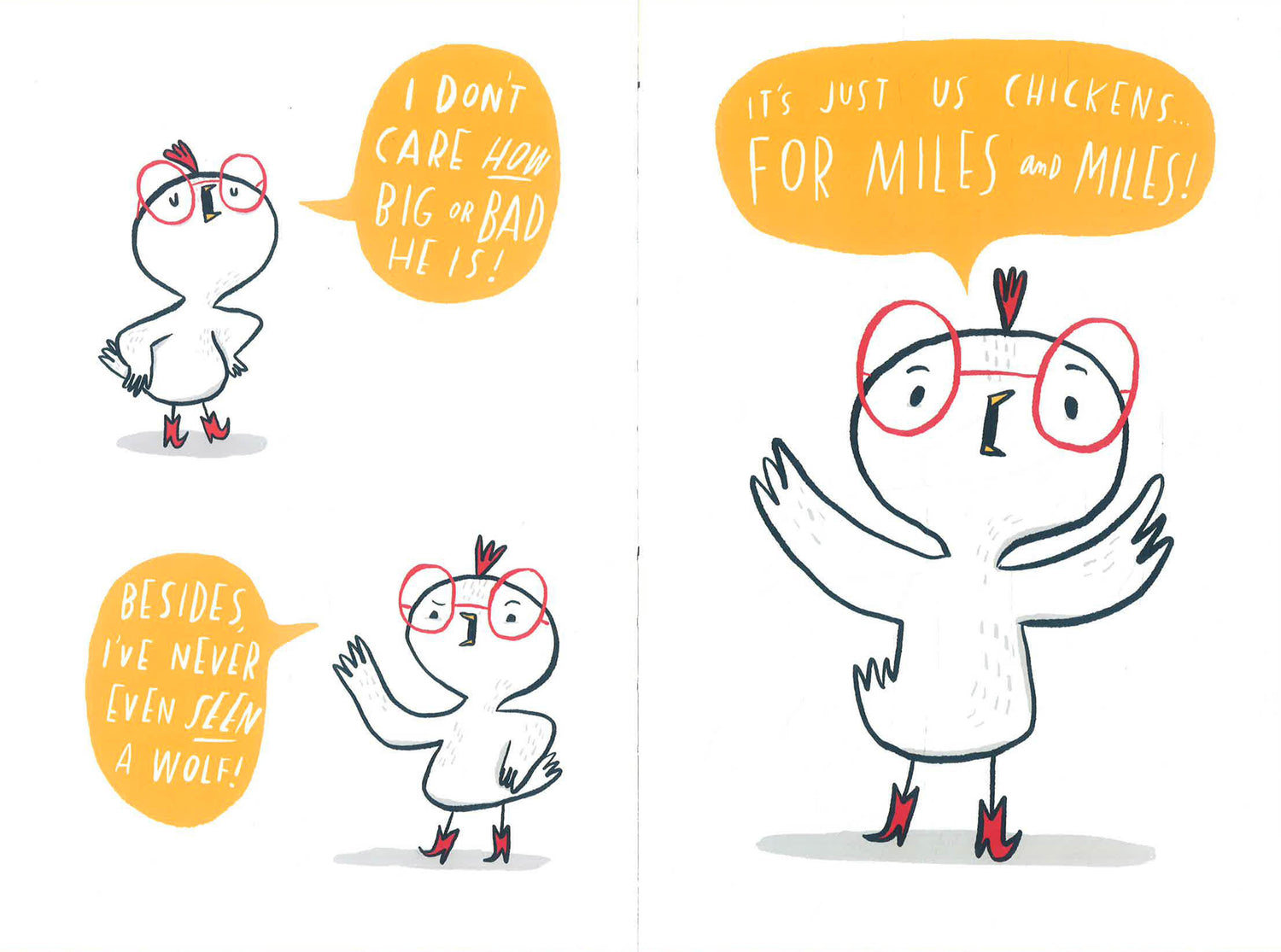 Chicken Little is NOT afraid of anything, not even a wolf. No matter how big or bad he is!