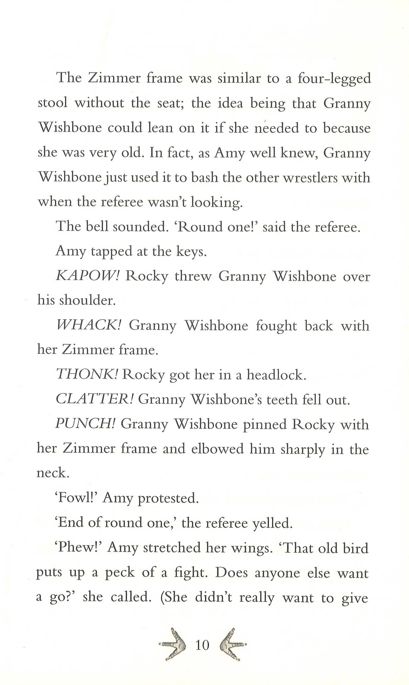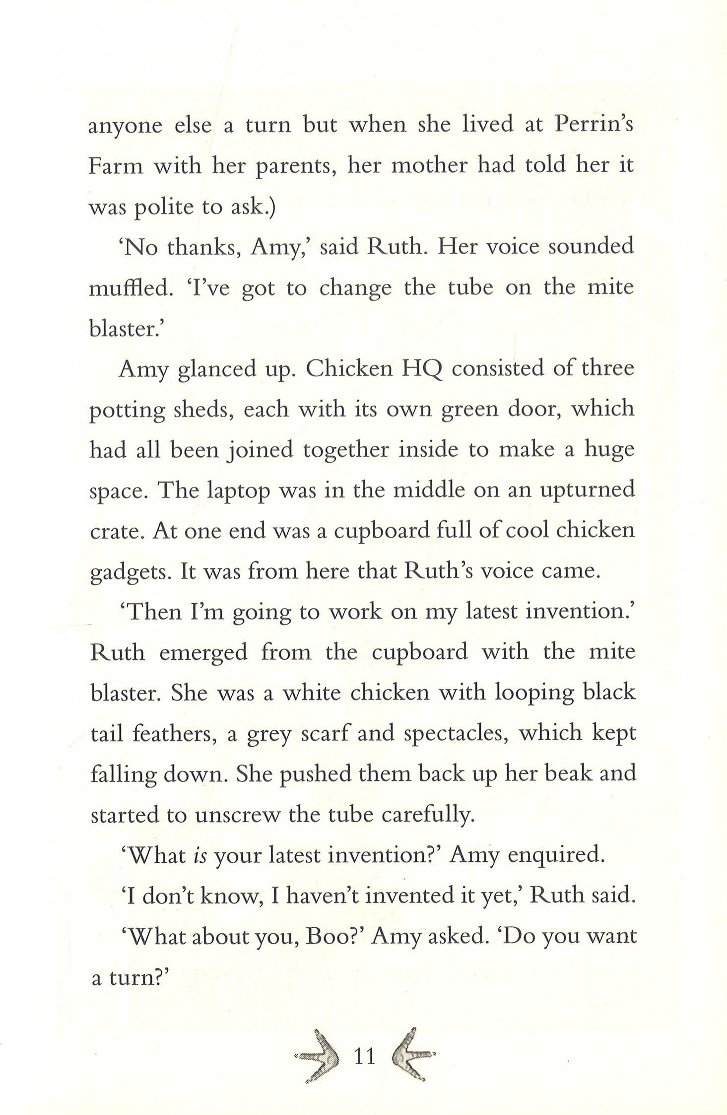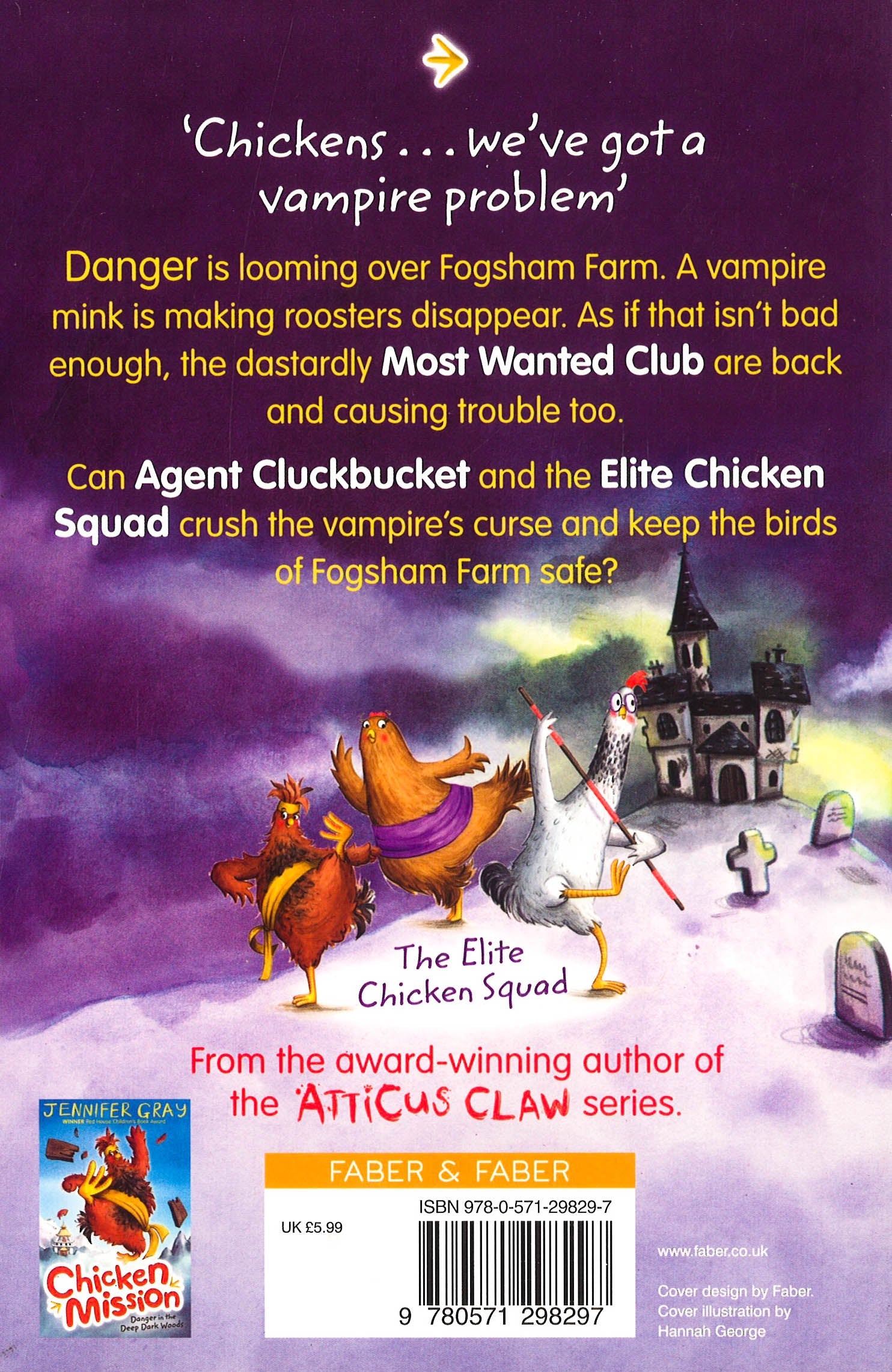 'Chickens: we've got a vampire problem.' In the lonely village of Fogsham, vampire mink Stella von Fangula, has risen from the grave. Her aim: to suck the blood of chickens in a bid for eternal life. In an attempt to stop Fangula, Professor Rooster orders his elite chicken squad to the scene. What he hasn't bargained on is the devious plotting of his archrival, Thaddeus E Fox and his MOST WANTED gang of criminals. Can Amy, Boo and Ruth find a way to stop Fox and Fangula and their army of zombie chickens before it's too late?