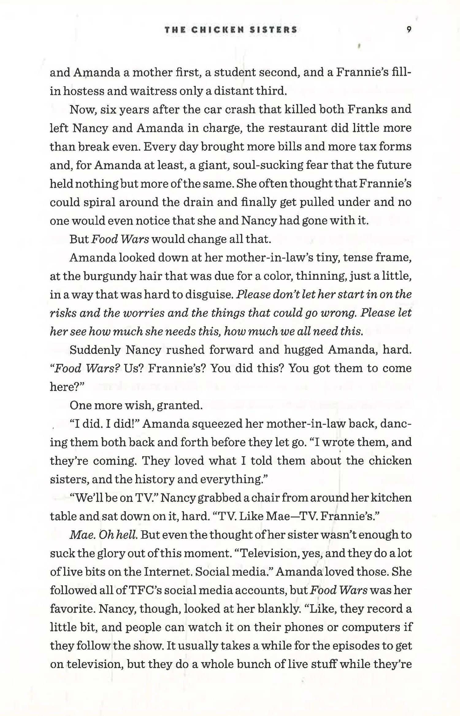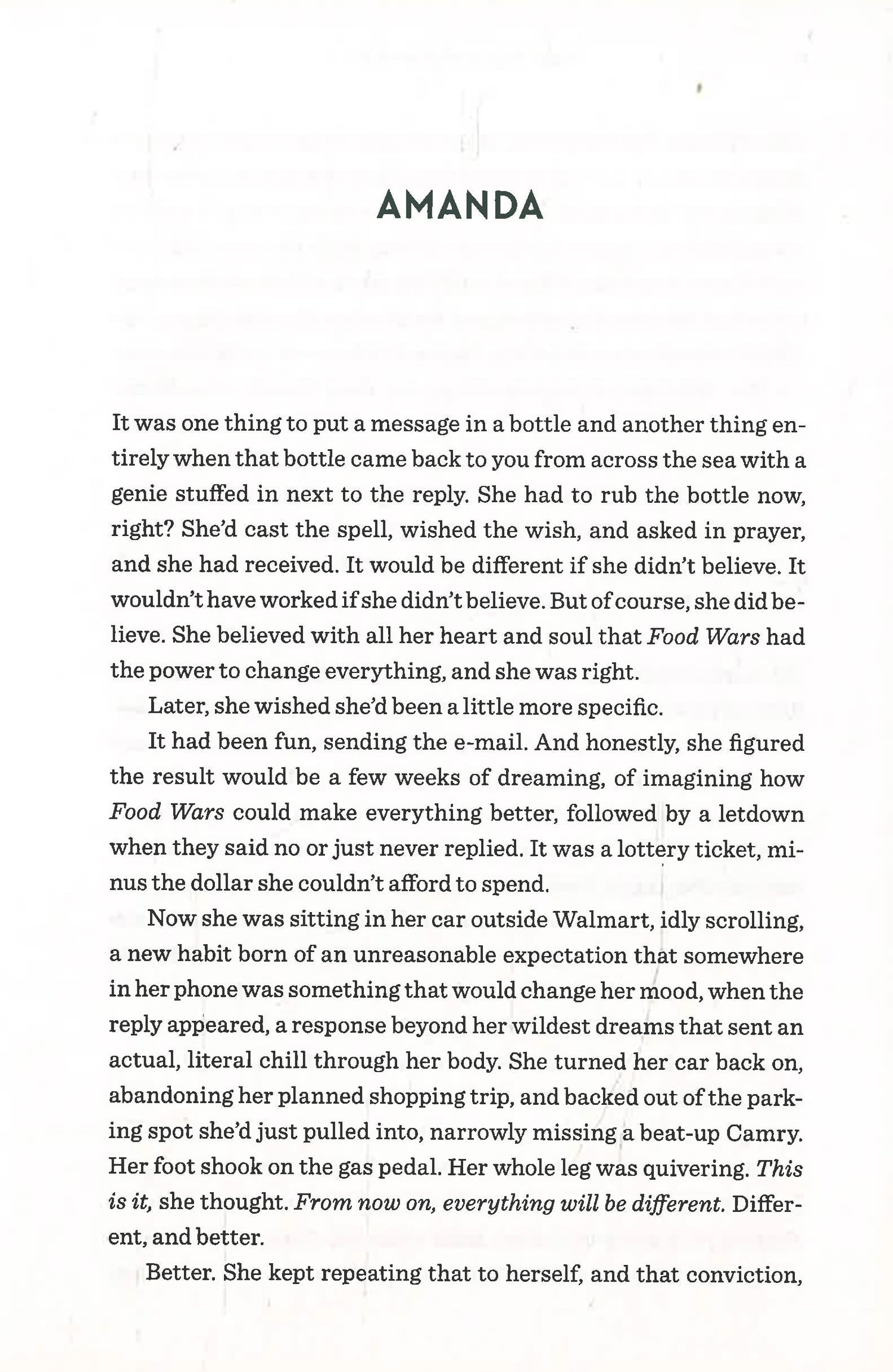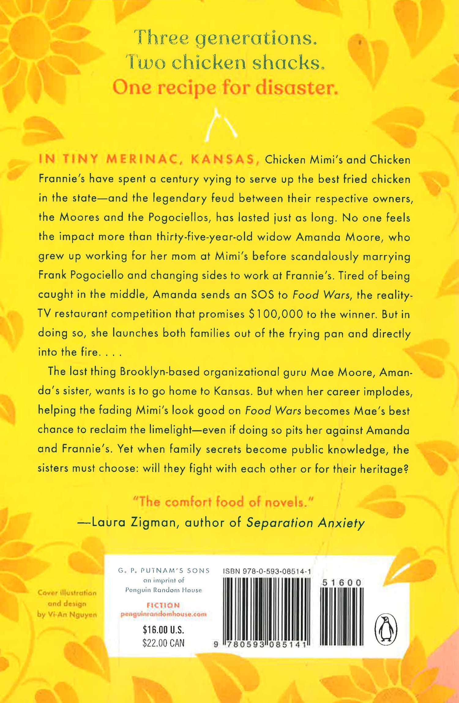 In tiny Merinac, Kansas, Chicken Mimi’s and Chicken Frannie’s have spent a century vying to serve up the best fried chicken in the state–and the legendary feud between their respective owners, the Moores and the Pogociellos, has lasted just as long. No one feels the impact more than thirty-five-year-old widow Amanda Moore, who grew up working for her mom at Mimi’s before scandalously marrying Frank Pogociello and changing sides to work at Frannie’s. Tired of being caught in the middle, Amanda sends an SOS to Food Wars, the reality TV restaurant competition that promises $100,000 to the winner. But in doing so, she launches both families out of the frying pan and directly into the fire. . .