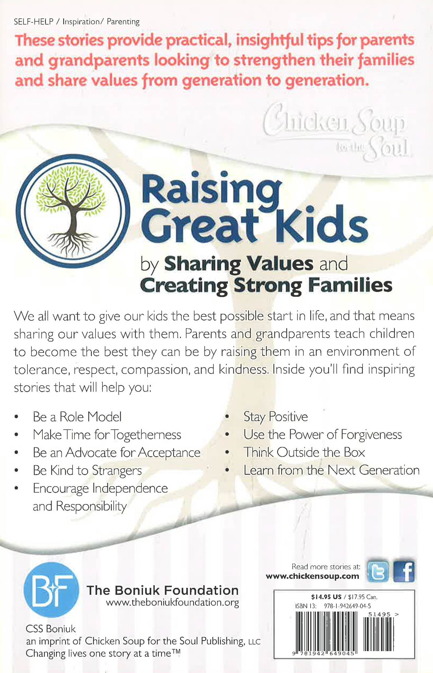Tolerance, respect, compassion and other values start at home, in healthy, strong relationships between the generations. These stories provide practical, insightful tips for parents and grandparents looking to strengthen their families and raise successful children. As role models, parents and grandparents teach good values, like tolerance, accepting differences, shedding prejudices, and making good decisions. And having those traits makes us more successful as adults, too. The personal stories in this collection not only show adult readers how to be their best selves, but also offer great advice on how to raise resilient, confident, upstanding kids — kids who exhibit all the qualities of acceptance, courage, and inner strength. These stories provide practical, insightful tips for parents and grandparents looking to strengthen their families and raise caring, confident, successful children.