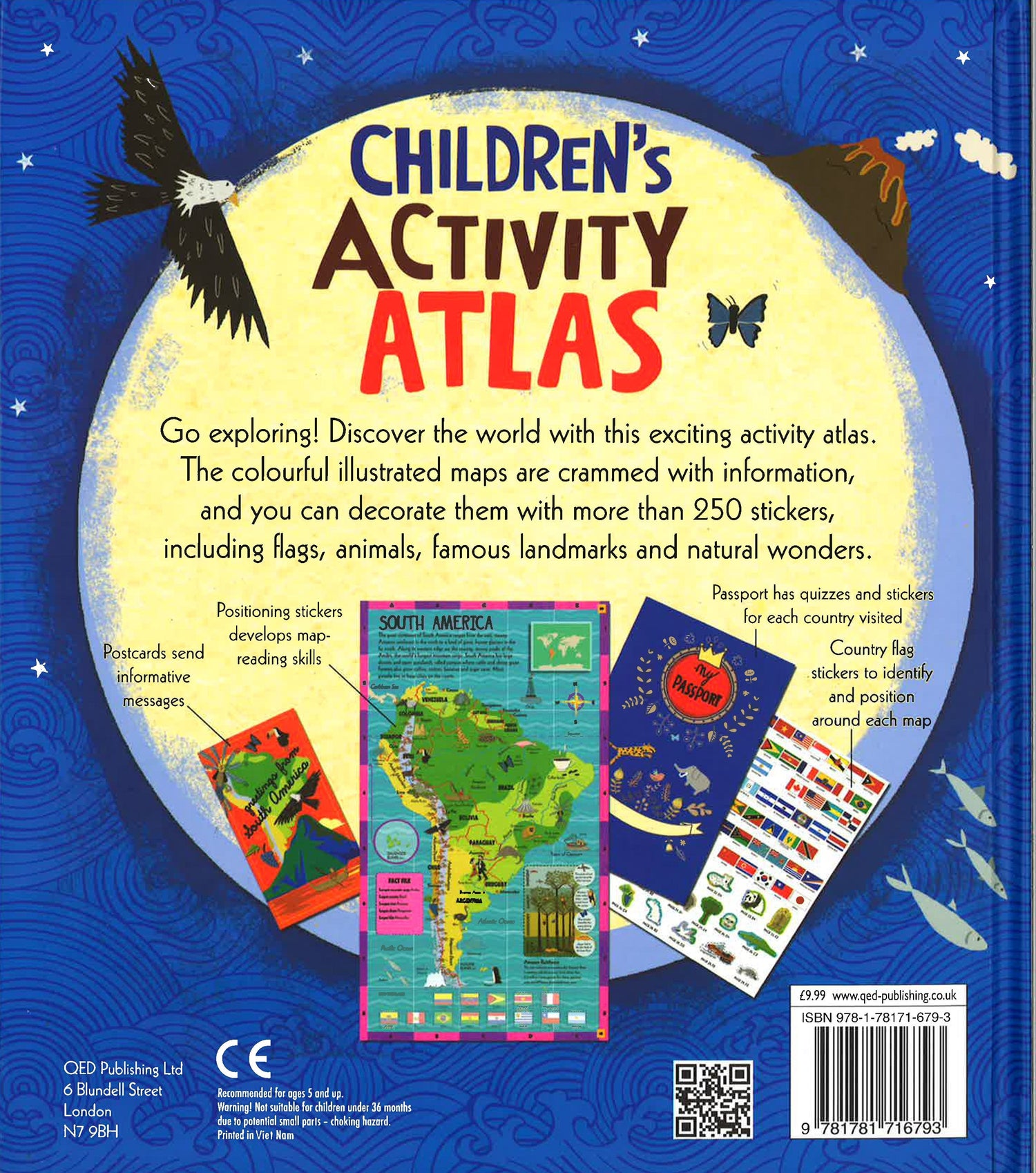 Crammed full of fun activities, this is an atlas like no other! Complete the maps by adding the flags and icon stickers to make them come alive, then fill in the passport with visa stickers, quizzes, games and activities. Don't forget to send a postcard from each of the six different continent! With essential geographical information such as countries, states, capital cities, principal mountains, rivers and lakes, this unique atlas is also full of interactive activities so that young readers can truly engage with discovering the world.
