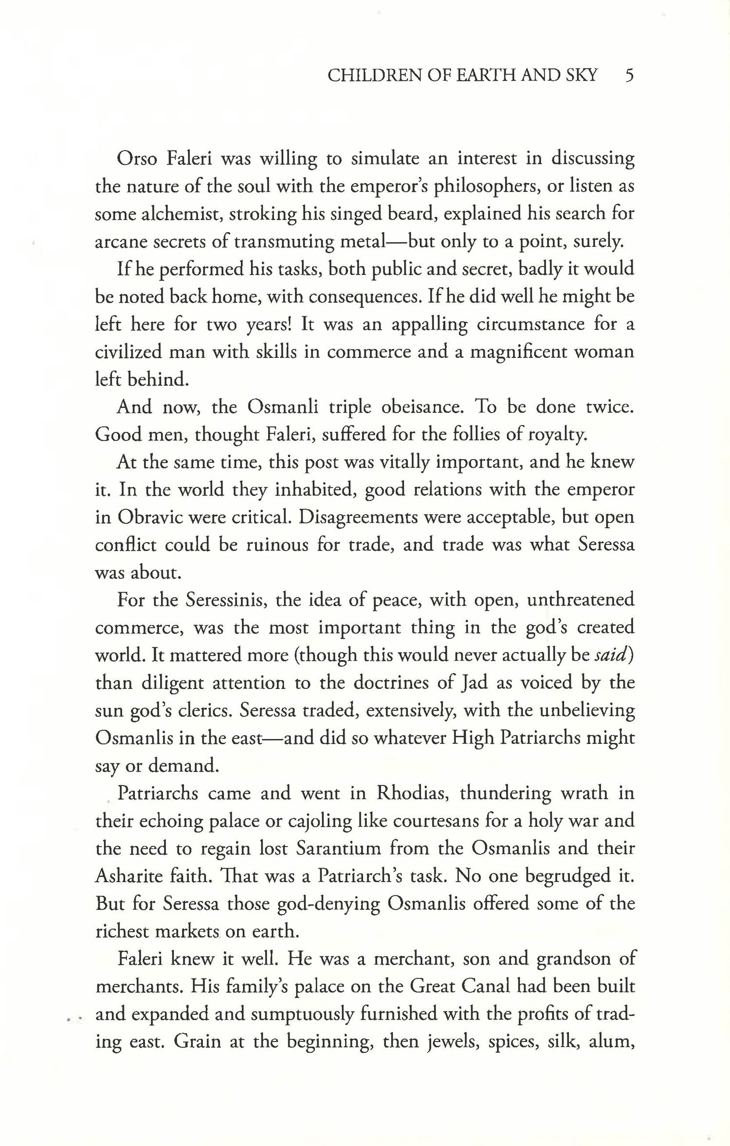 From the small coastal town of Senjan, notorious for its pirates, a young woman sets out to find vengeance for her lost family. That same spring, from the wealthy city-state of Seressa, famous for its canals and lagoon, come two very different people: a young artist traveling to the dangerous east to paint the grand khalif at his request--and possibly to do more--and a fiercely intelligent, angry woman, posing as a doctor's wife, but sent by Seressa as a spy. The trading ship that carries them is commanded by the accomplished younger son of a merchant family, ambivalent about the life he's been born to live. And farther east a boy trains to become a soldier in the elite infantry of the khalif--to win glory in the war everyone knows is coming. As these lives entwine, their fates--and those of many others--will hang in the balance, when the khalif sends out his massive army to take the great fortress that is the gateway to the western world...