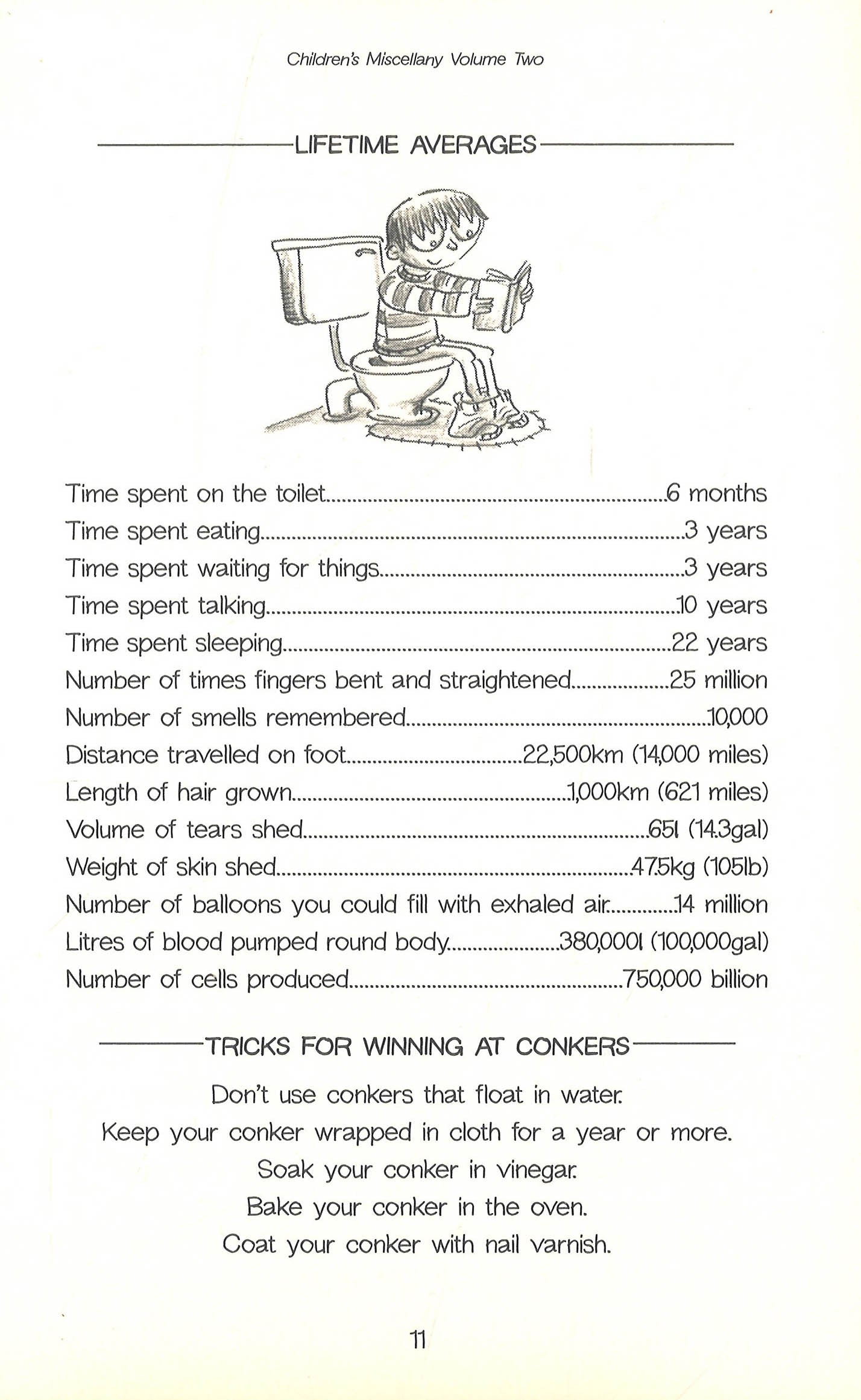 The sequel to the best-selling "Children's Miscellany". Packed full of even more, even smarter, even stranger facts, "Children's Miscellany Volume Two" includes Shakespearian insults, the longest place names in the world, five ways to de-smell your trainers and how to hypnotize a chicken!