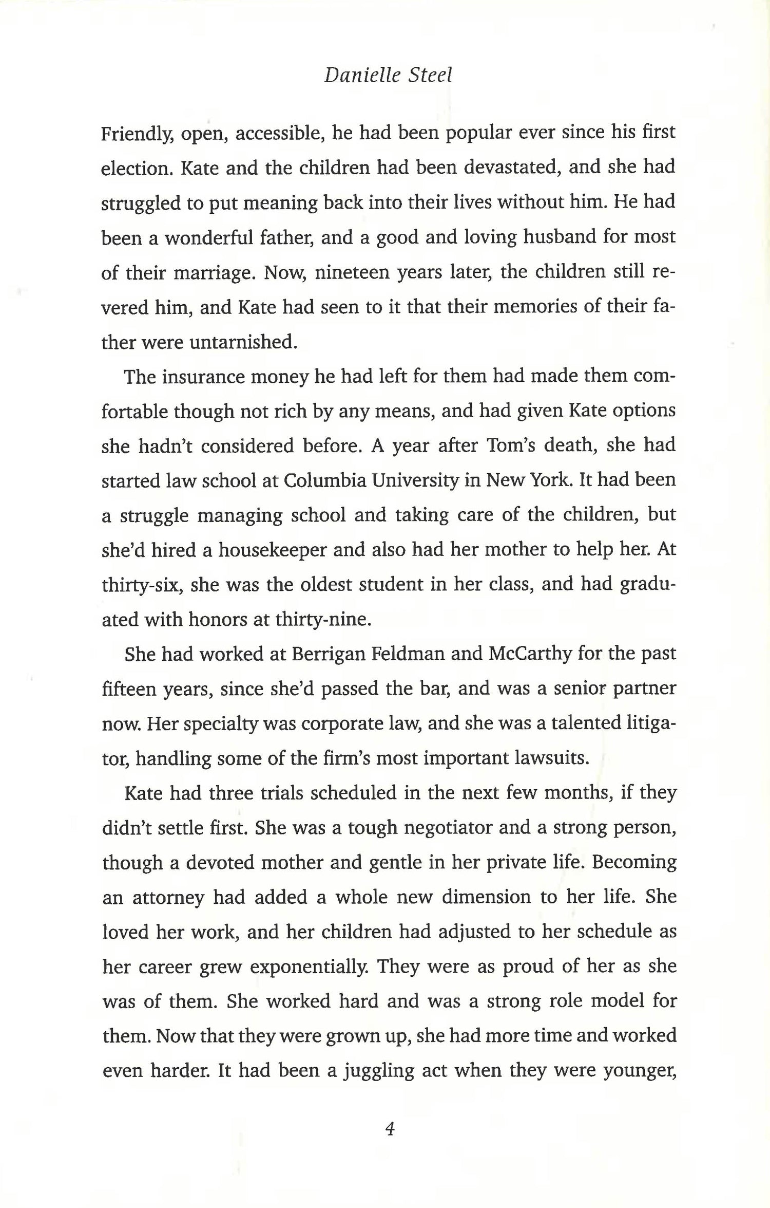 A senior partner at a prestigious New York law firm, Kate Morgan couldn’t be prouder of her three grown children. Tamara, Anthony, and Claire all went to great schools, chose wonderful career paths, and would have made their father proud. A single mother for years after the death of her husband, Kate keeps a tight rein on her family, her career, and even her own emotions, never once asking herself if she truly knows her children . . . or if her hopes for them are the right ones, and what they want. She is about to find out.