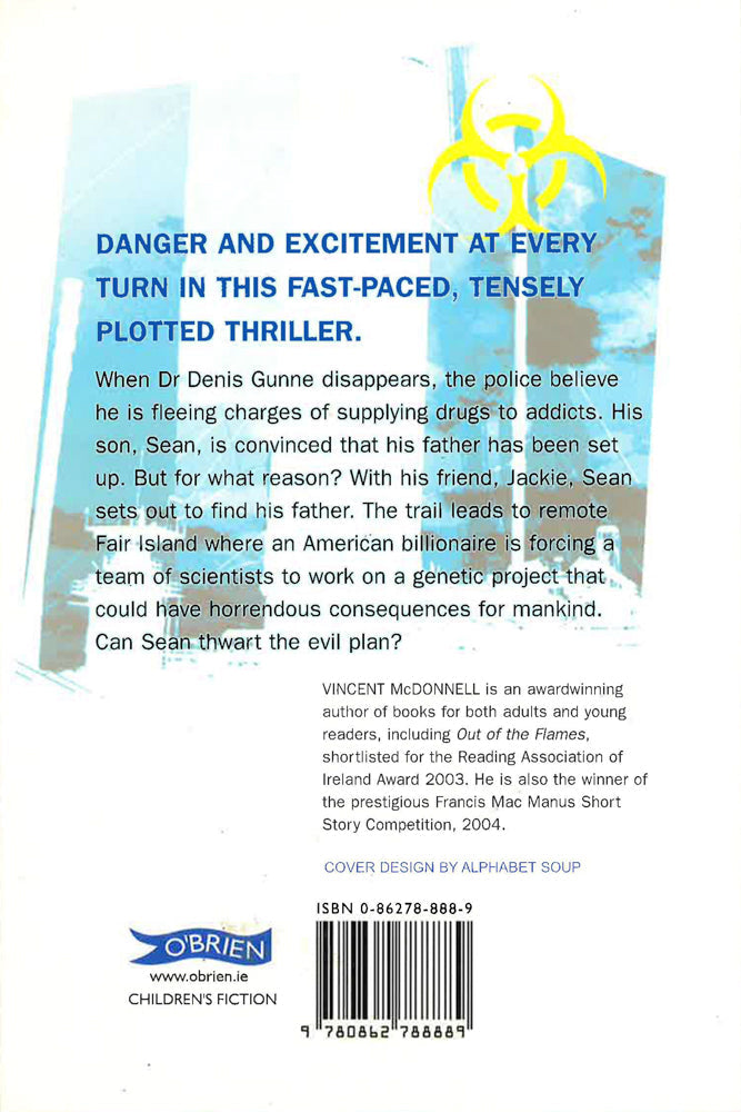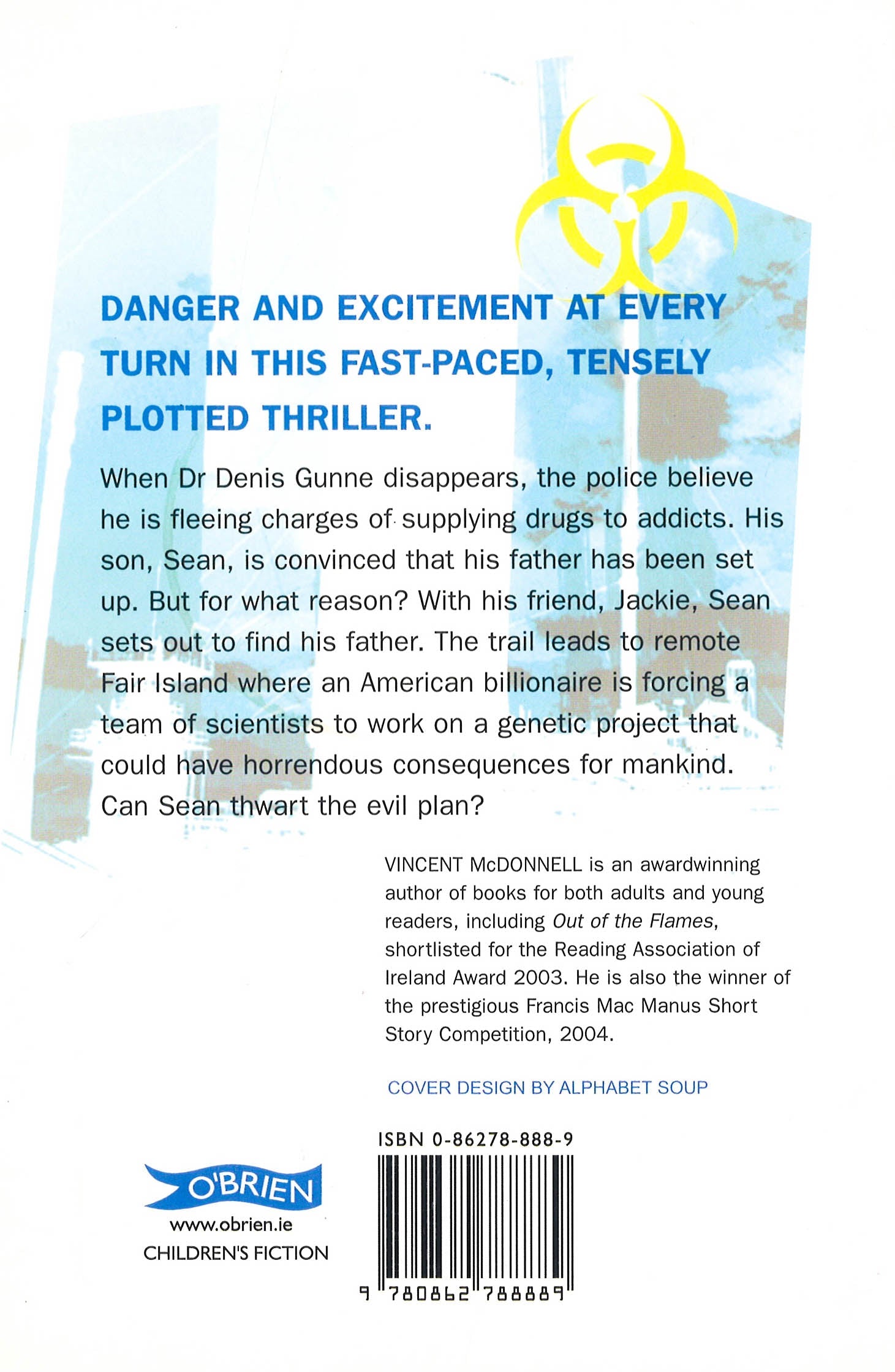 An American billionaire is forcing a team of scientists to work on a genetic project that could have horrendous consequences for mankind. Can Sean rescue his father and thwart the evil plan? When Dr Denis Gunne disappears, the police believe he is fleeing charges of supplying drugs to addicts. His son, Sean is convinced that his father has been set up. But for what reason? With his friend, Jackie, Sean sets out to find his father. The trail leads to remote Fair Island where an American billionaire is forcing a team of scientists to work on a genetic project that could have horrendous consequences for mankind. Can Sean rescue his father and thwart the evil plan?