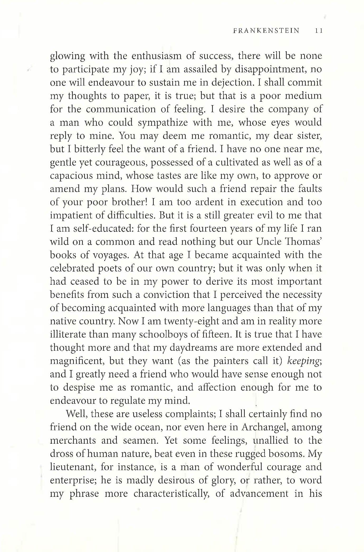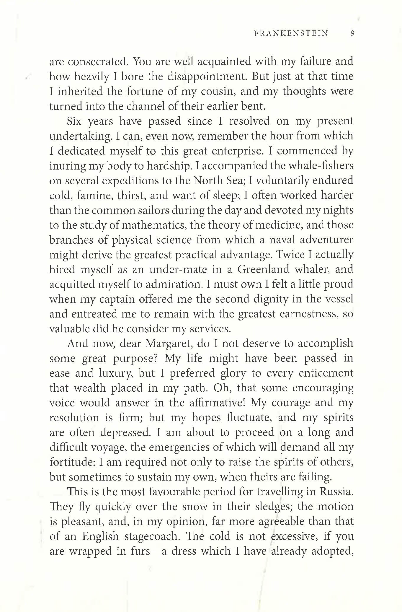 Mary Shelley's Frankenstein tells the story of scientist Victor Frankenstein's creation of a monster and the disaster and woe that result. Victor Frankenstein, telling his story to explorer Robert Walton, explains that he assembled a creature out of body parts, brought it to life, and fled in terror. The creature was rejected by humans and came to realize the horror of his existence, blaming Victor. The creature began to hunt down and kill Victor's loved ones and pursued Victor to the Arctic. Victor dies on Walton's ship. The creature wanders into the Arctic alone after Victor's death and plans to end his life there.
