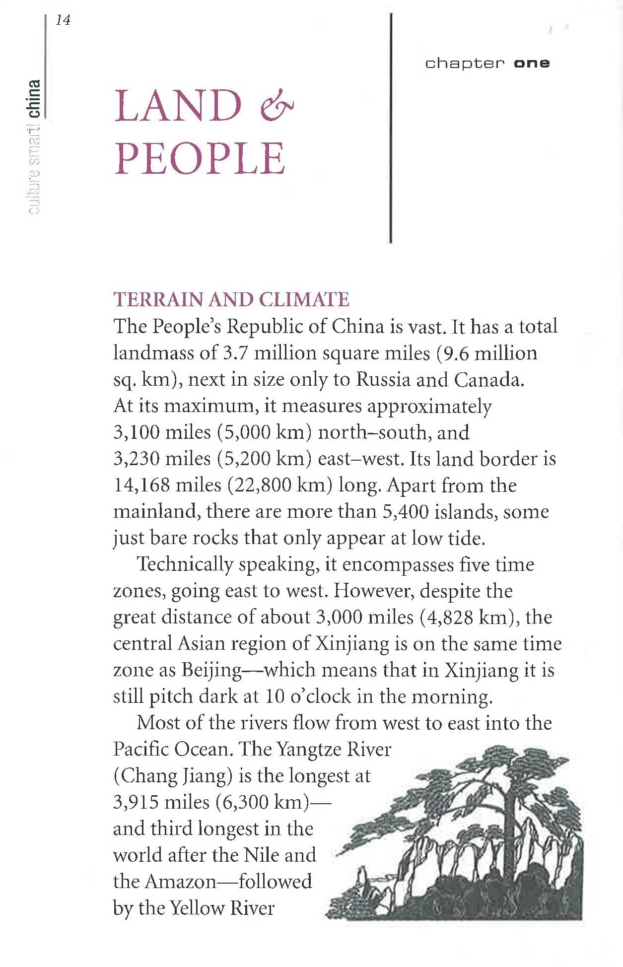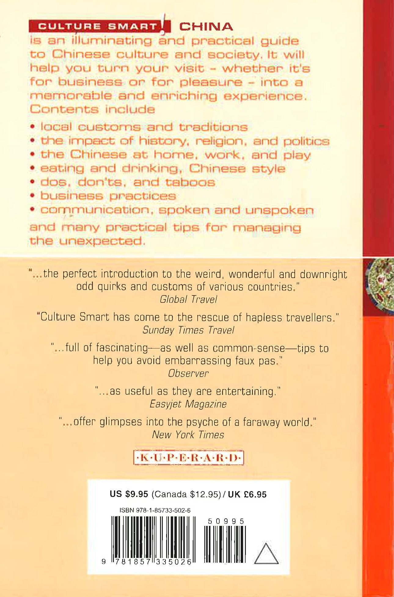 Culture Smart! provides priceless nuggets of cultural information on China not found in a standard guidebook. Whether you are looking to secure a business deal, enrich your travels, or simply better understand China, its people and customs, Culture Smart! provides the information in a clear and highly readable guide. Rather than get bogged down with where to stay, where to eat, and where to go; provide yourself with the knowledge of what makes the country tick and experience China as a local. Culture Smart! provides rare insights, and practical guidance, into cultures. The values, behaviour and customs of peoples have been formed over centuries which is why the unique information in Culture Smart! guides do not date in the same way as ordinary travel guides. Culture Smart! enables you to step into a world untouched by other guidebooks.