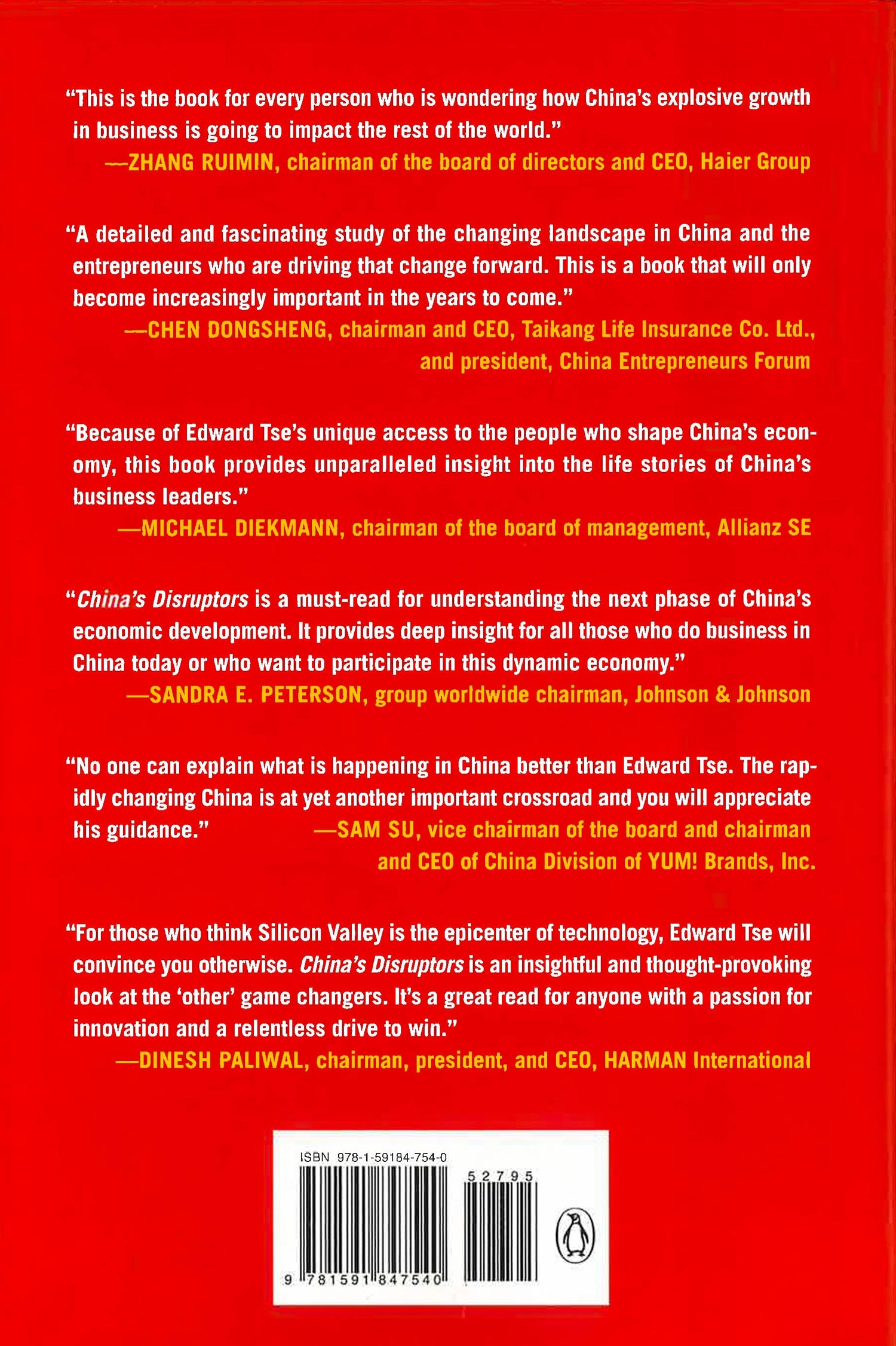 In September 2014, Chinese e-commerce giant Alibaba raised $25 billion in the world s biggest-ever initial public offering. Since then, millions of investors and managers worldwide have pondered a fundamental question: What s "really "going on with the new wave of China s disruptors? Alibaba wasn t an outlier it s one of a rising tide of thriving Chinese companies, mostly but not exclusively in the technology sector. Overnight, its founder, Jack Ma, appeared on the same magazine covers as American entrepreneurial icons like Mark Zuckerberg. Ma was quickly followed by the founders of other previously little-known companies, such as Baidu, Tencent, and Xiaomi. Over the past two decades, an unprecedented burst of entrepreneurialism has transformed China s economy from a closed, impoverished, state-run system into a major power in global business. As products in China become more and more sophisticated, and as its companies embrace domestically developed technology, we will increasingly see Chinese goods setting global standards. Meanwhile, companies in the rest of the world wonder how they can access the fast-rising incomes of China s 1.3 billion consumers. Now Edward Tse, a leading global strategy consultant, reveals how China got to this point, and what the country s rise means for the United States and the rest of the world. Tse has spent more than twenty years working with senior Chinese executives, learning firsthand how China s most powerful companies operate. He s an expert on how private firms are thriving in what is still, officially, a communist country. His book draws on exclusive interviews and case studies to explore questions such as *What drives China s entrepreneurs? Personal fame and fortune or a quest for national pride and communal achievement? *How do these companies grow so quickly? In 2005, Lenovo sold just one category of products (personal computers) in one market, China. Today, not only is it the world s largest PC seller; it is also the world s third-largest smartphone seller. *How does Chinese culture shape the strategies and tactics of these business leaders? Can outsiders copy what the Chinese are doing? *Can capitalists really thrive within a communist system? How does Tencent s Pony Ma serve as a member of China s parliament while running a company that dominates online games and messaging? *What impact will China have on the rest of the world as its private companies enter new markets, acquire foreign businesses, and threaten established firms in countless industries? As Tse concludes: I believe that as a consequence of the opening driven by China s entrepreneurs, the push to invest in science, research, and development, and the new freedoms that people are enjoying across the country, China has embarked on a renaissance that could rival its greatest era in history the Tang dynasty. These entrepreneurs are the front line in China s intense hunger for success. They will have an even more remarkable impact on the global economy in the future, through the rest of this decade and beyond.