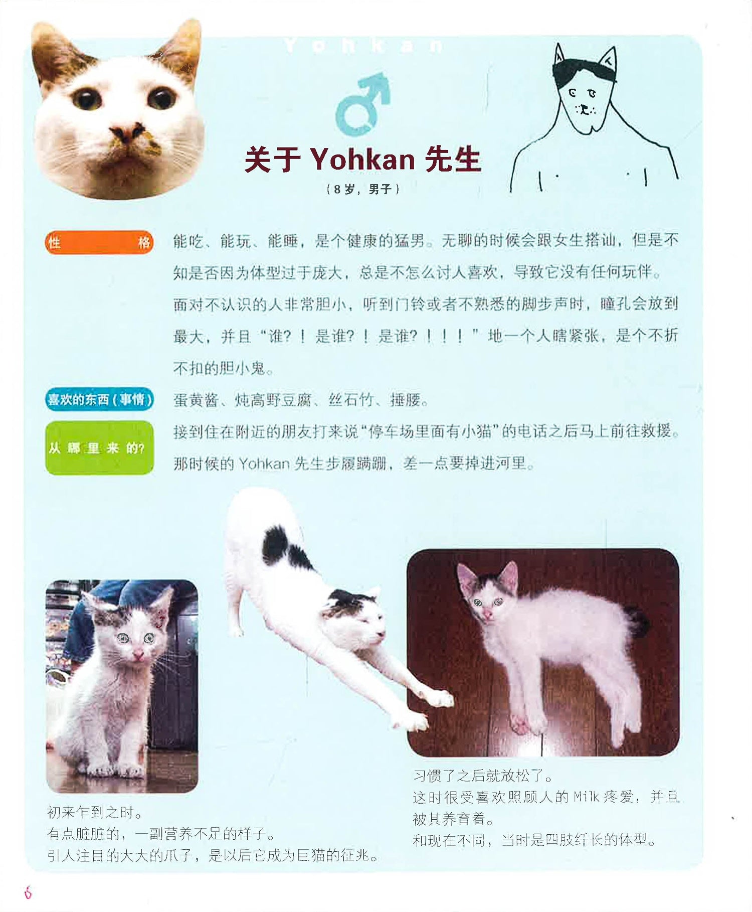 “吉松家□□贱”骨子里淌着自由奔放血液的YOHKAN先生,常年与自己并称吃货的蛋疼□子LEO爷爷混在一起搅基(Leo爷爷是一头看见鳗鱼表情立刻□萌的喵星人)。purin虽然把YOHKAN当做朋友,但看到张牙舞爪的它,还是忍不住呼巴掌过去。MILK与年长的LEO似乎有不共戴天之仇,即便心中埋藏着对同龄人仇恨的种子,仍然像淑女一样礼貌得体地对待自己的主人;cocoa,除了爷爷外,她谁都讨厌,相比较来说更讨厌YOHKAN “消失吧,你这个渣猫”。YOHKAN啊……绝对是一个非常矛盾的存在。