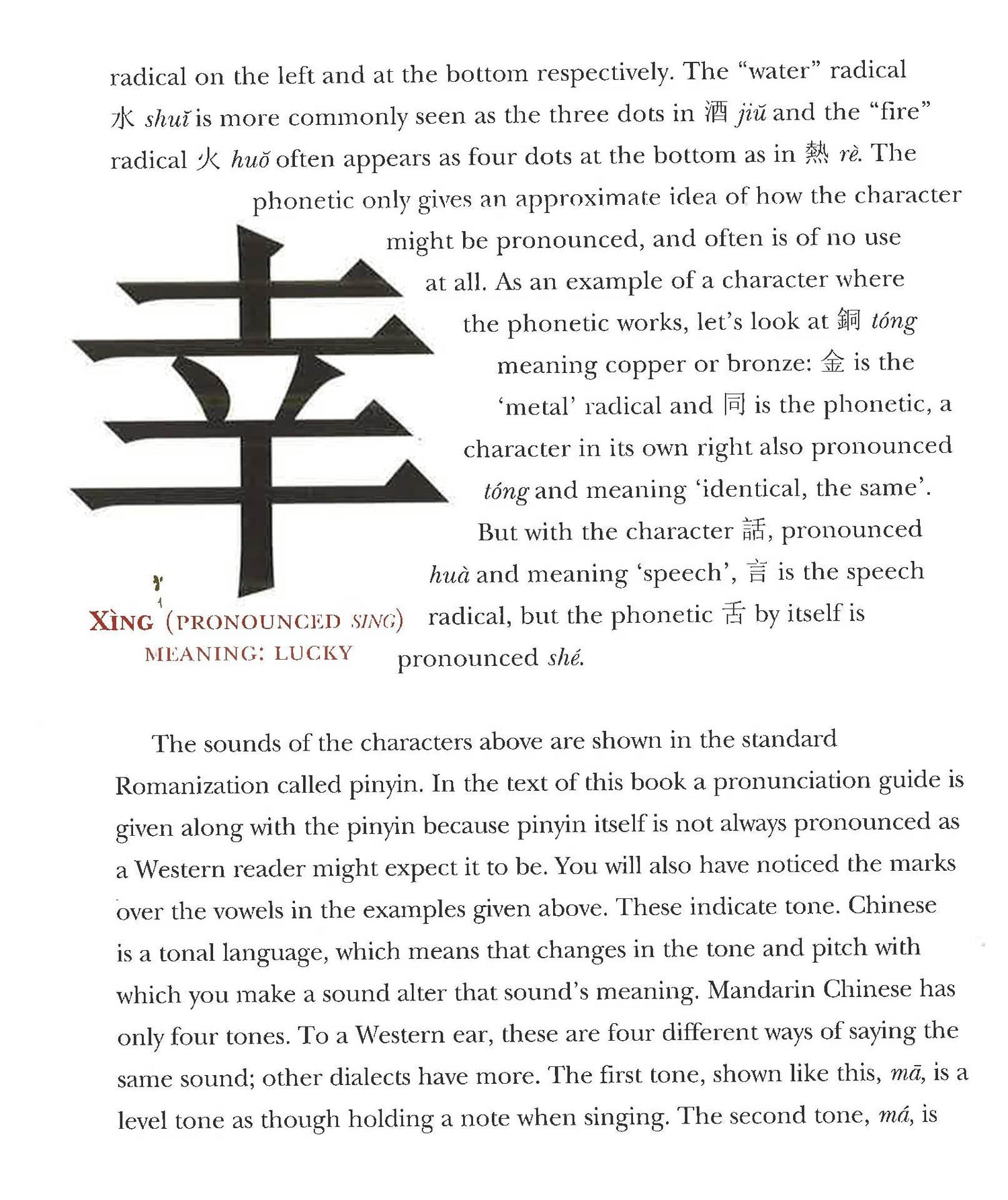 Chinese Characters introduces readers to the art and meaning of Hanzi. Each Chinese character is displayed on its own page with its pronunciation, meaning, and a brief explanation of the character. An introduction details the history of Chinese characters and the way it has developed over the years. It even explains how digital technology has affected the use and art of Chinese characters.