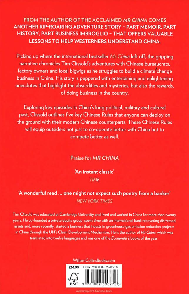 Picking up where he left off in the international bestseller 'Mr. China', 'Chinese Rules' chronicles his most recent exploits, with assorted Chinese bureaucrats, factory owners, and local characters building a climate change business in China. Of course, all does not go as planned as he finds himself caught between the world's largest carbon emitter and the world's richest man. Clissold offers entertaining and enlightening anecdotes of the absurdities, gaffes, and mysteries he encountered along the way.