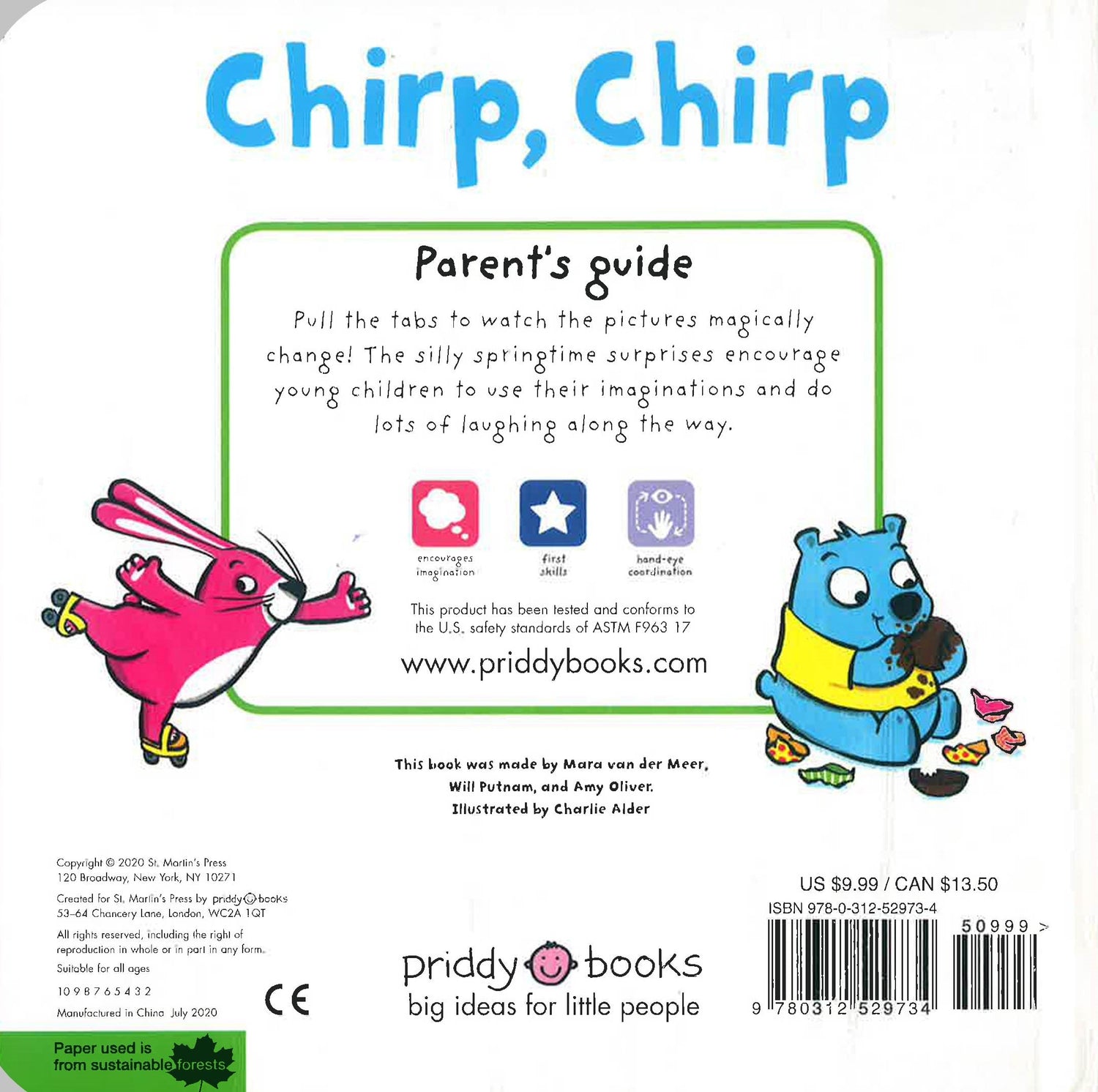 With clever acetate pictures that change at the pull of a tab, Roger Priddy's fun, interactive A Changing Picture Book: Chirp, Chrip will encourage preschoolers to use their imaginations.