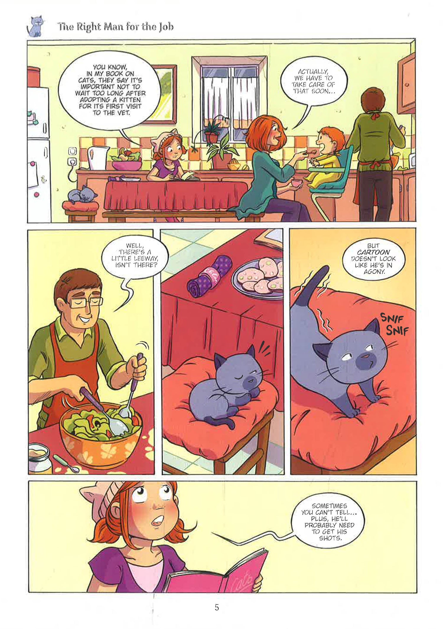 After three months in the Blin household, Cartoon the kitten is starting to find his place in the family. From catnaps with adolescent Chloe, playing with little Arthur, and sharpening his claws in a never-ending rivalry with Tony--the head of the household-- Cartoon is set. That is, until one day when he finds himself in a moving car that is pulling into a place with all sorts of strange animal noises and smells. What is going on? Will the honeymoon be over once and for all when Cartoon meets the Vet?