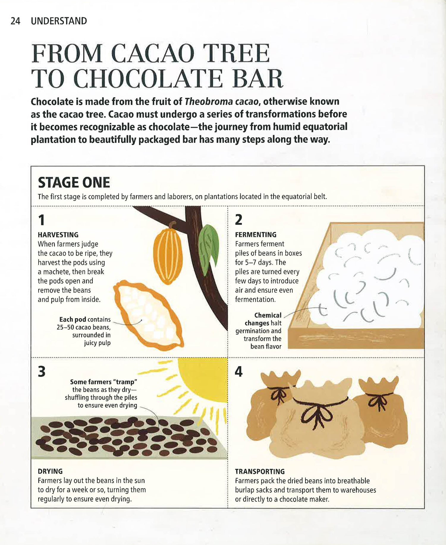Find out how to identify quality when buying, taste like a pro, or make your own chocolate at home and experiment with different flavor combinations. Take the leap from chocoholic to chocolatier with the help of more than 20 step-by-step recipes for truffles, fondant, cake, ice cream, and more. Eight step-by-step techniques provide mini master classes for tempering, flavoring, and even making your own bean-to-bar chocolate. Chocolate also traces the transformation from cocoa bean to bar, highlights the chocolate-producing countries throughout the world, and explains why chocolate is so addictive.