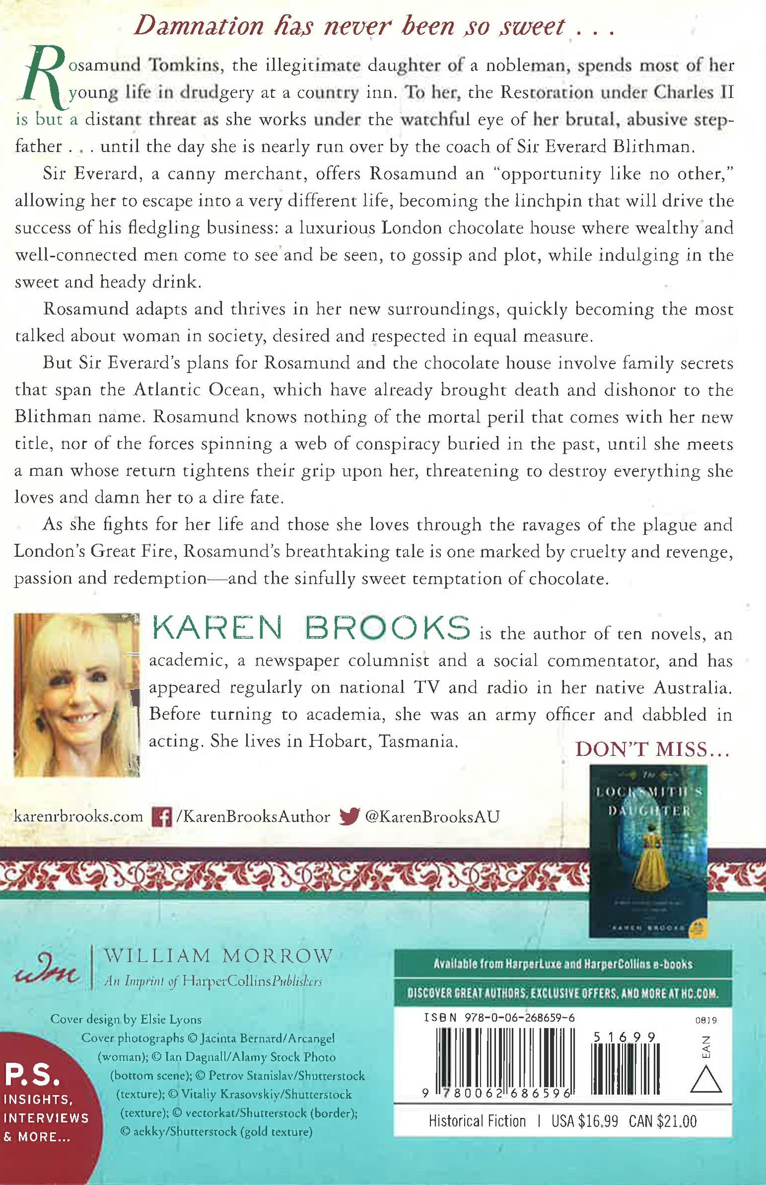 Australian bestselling novelist Karen Brooks rewrites women back into history with this breathtaking novel set in 17th century London—a lush, fascinating story of the beautiful woman who is drawn into a world of riches, power, intrigue…and chocolate.