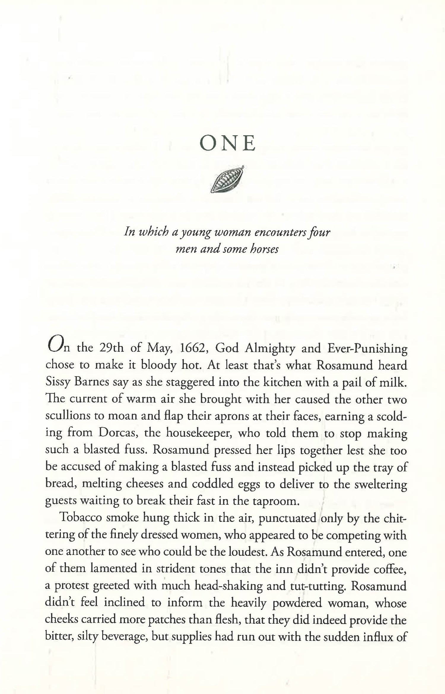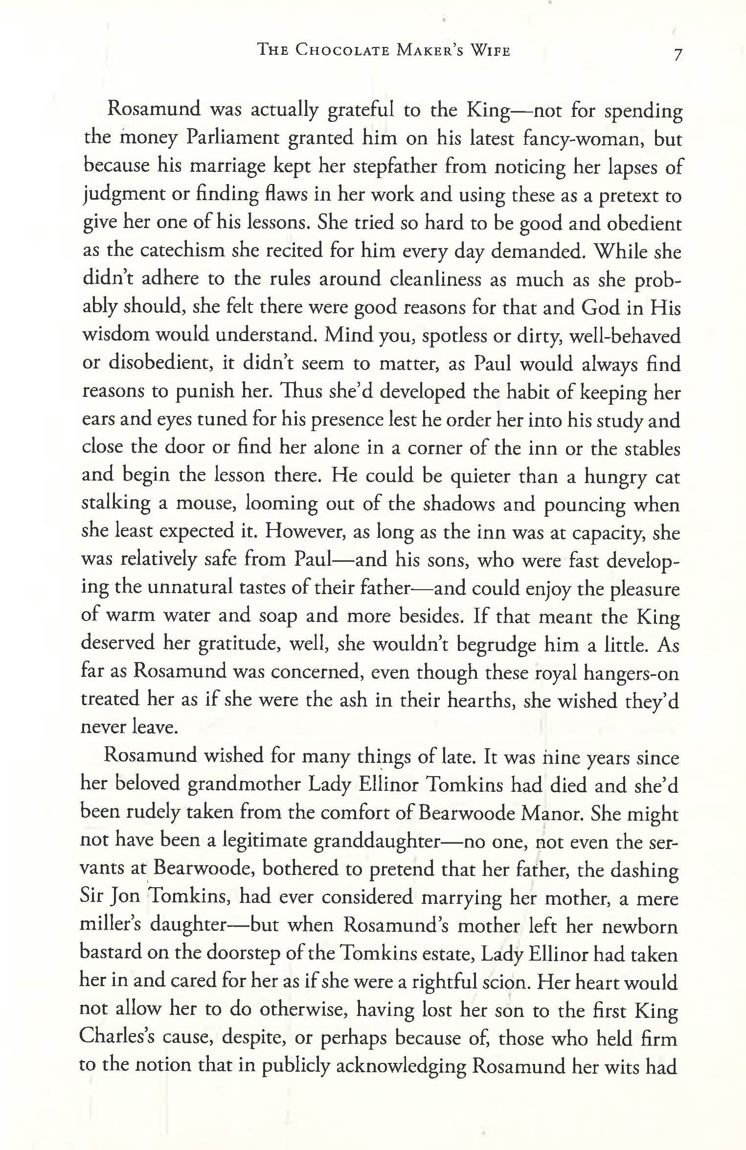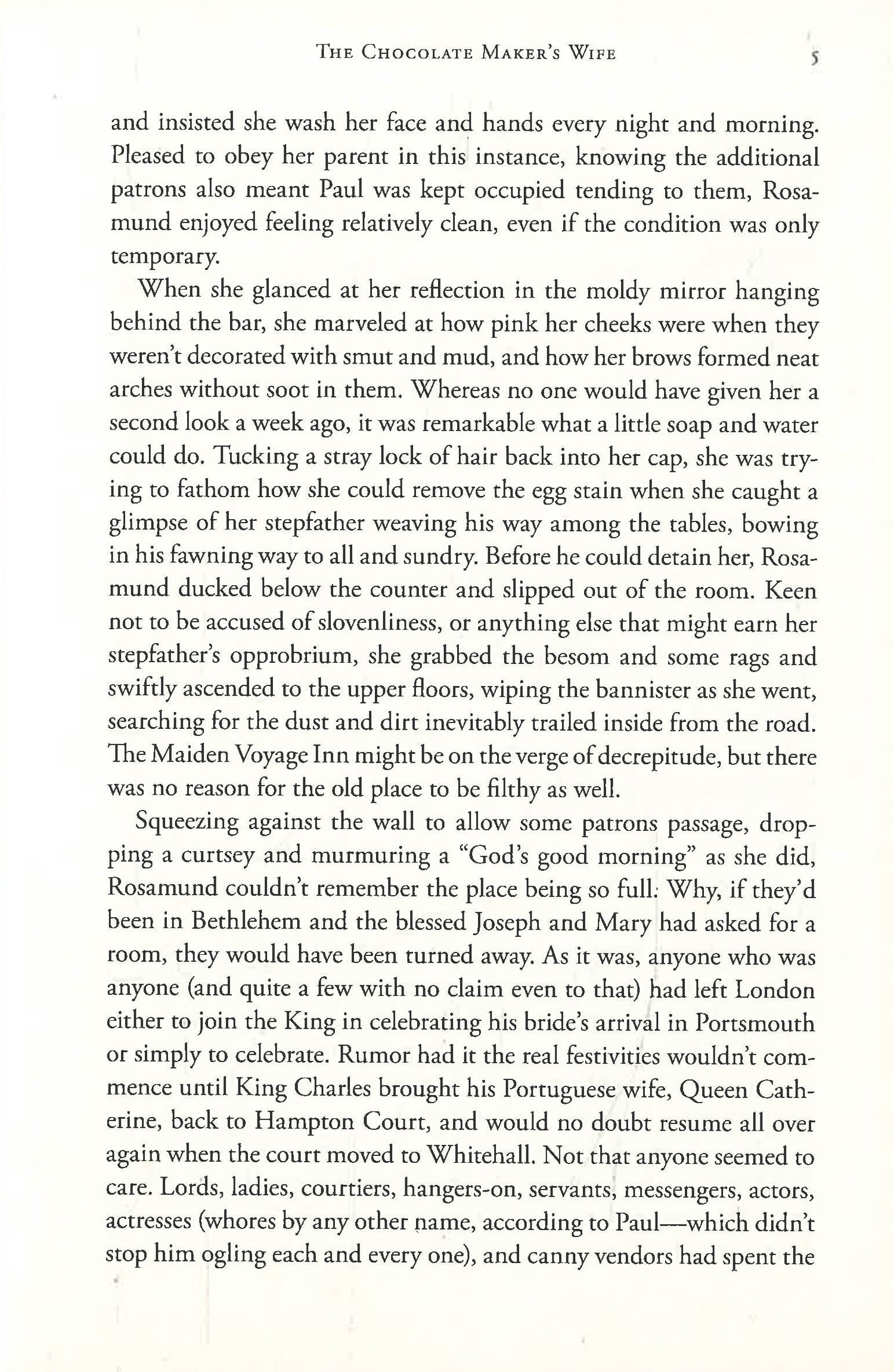 Rosamund Tomkins, the illegitimate daughter of a nobleman, spends most of her young life in drudgery at a country inn. To her, the Restoration under Charles II, is but a distant threat as she works under the watchful eye of her brutal, abusive stepfather . . . until the day she is nearly run over by the coach of Sir Everard Blithman.
