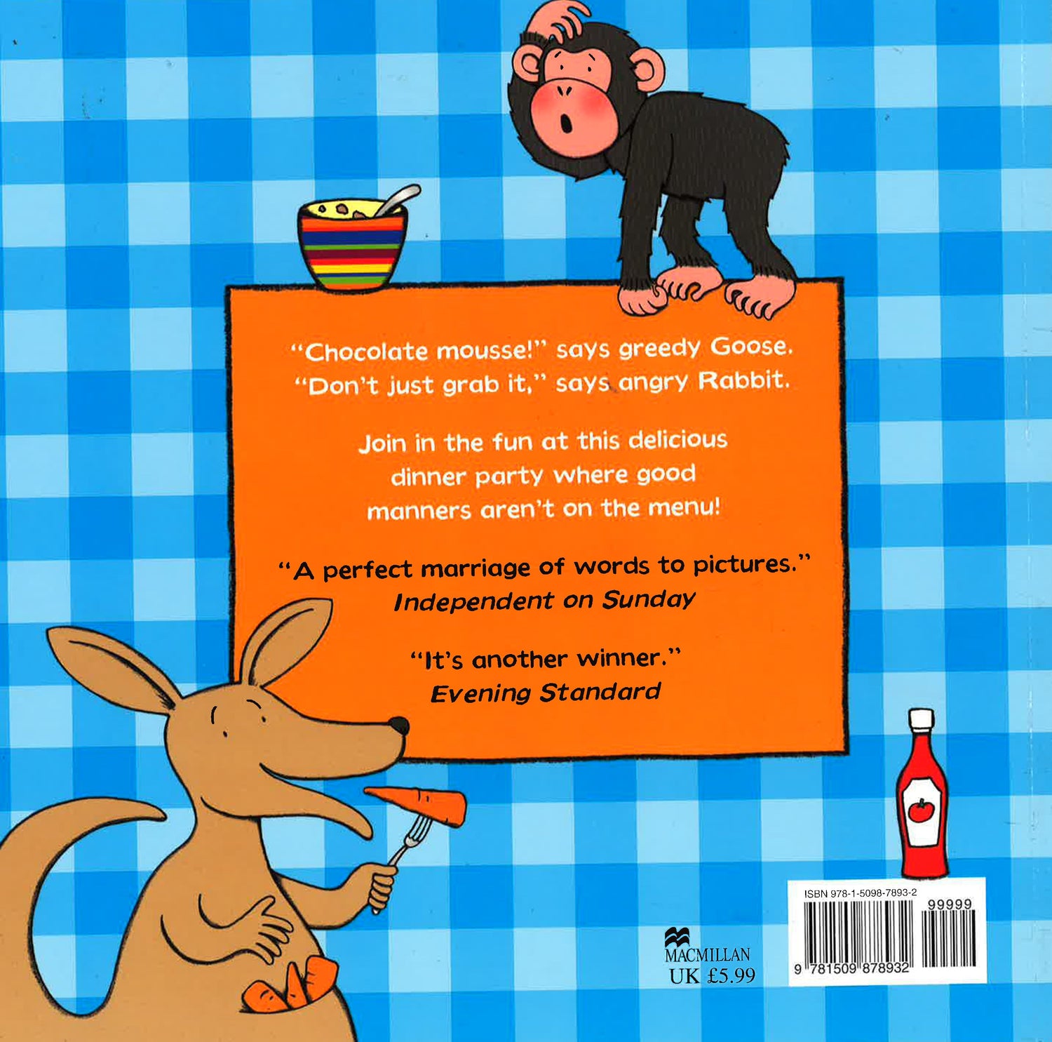 "Chocolate mousse!" says greedy Goose. "Don't just grab it," says angry Rabbit. Join in the fun at this delicious dinner party where good manners aren't on the menu!