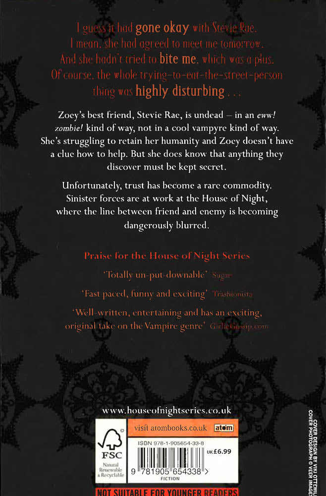 The third compulsive instalment of Atom's hot new series set in a high school for vampires. "I guess it had gone okay with Stevie Rae. I mean, she had agreed to meet me tomorrow. And she hadn't tried to bite me, which was a plus. Of course, the whole trying-to-eat-the-street-person thing was highly disturbing ..." Zoey's best friend, Stevie Rae, is undead - in an eww! zombie! kind-of-way, not in a cool vampire kind-of-way. She's struggling to retain her humanity and Zoey doesn't have a clue how to help. But she does know that anything they discover must be kept secret. Trust has become a rare commodity. Sinister forces are at work at the House of Night, where the line between friend and enemy is becoming dangerously blurred. - Not suitable for younger readers -