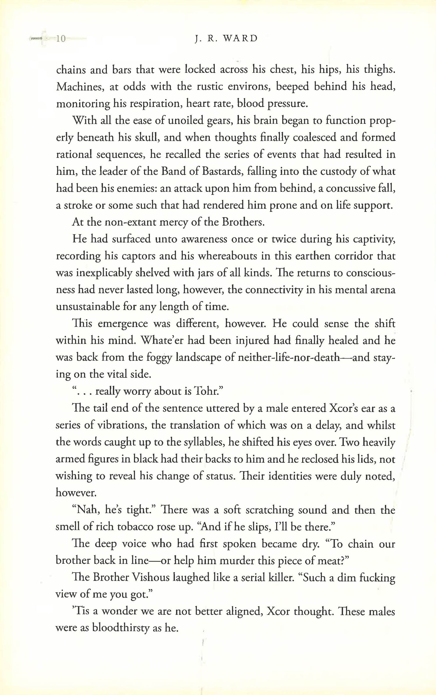 A scorching forbidden love threatens to tear a rift through the Black Dagger Brotherhood in J. R. Ward's newest novel in the #1 New York Times bestselling series.Xcor, leader of the Band of Bastards, convicted of treason against the Blind King, is facing a brutal interrogation and torturous death at the hands of the Black Dagger Brotherhood. Yet after a life marked by cruelty and evil deeds, he accepts his soldier's fate, his sole regret the loss of a sacred female who was never his: the Chosen Layla.Layla alone knows the truth that will save Xcor's life. But revealing his sacrifice and his hidden heritage will expose them both and destroy everything Layla holds dear - even her role of mother to her precious young. Torn between love and loyalty, she must summon the courage to stand up against the only family she has for the only man she will ever love. Yet even if Xcor is somehow granted a reprieve, he and Layla would have to confront a graver challenge: bridging the chasm that divides their worlds without paving the way for a future of even greater war, desolation and death.As a dangerous old enemy returns to Caldwell, and the identity of a new deity is revealed, nothing is certain or safe in the world of the Black Dagger Brotherhood, not even true love . . . or destinies that have long seemed set in stone.
