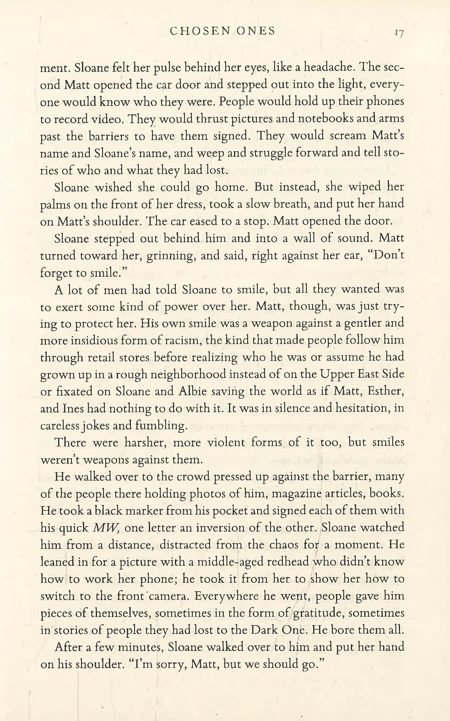 Veronica Roth is the New York Times best-selling author of Chosen Ones, the short story collection The End and Other Beginnings, the Divergent series, and the Carve the Mark duology. She is also the guest editor of the most recent The Best American Science Fiction and Fantasy. She lives in Chicago, Illinois.