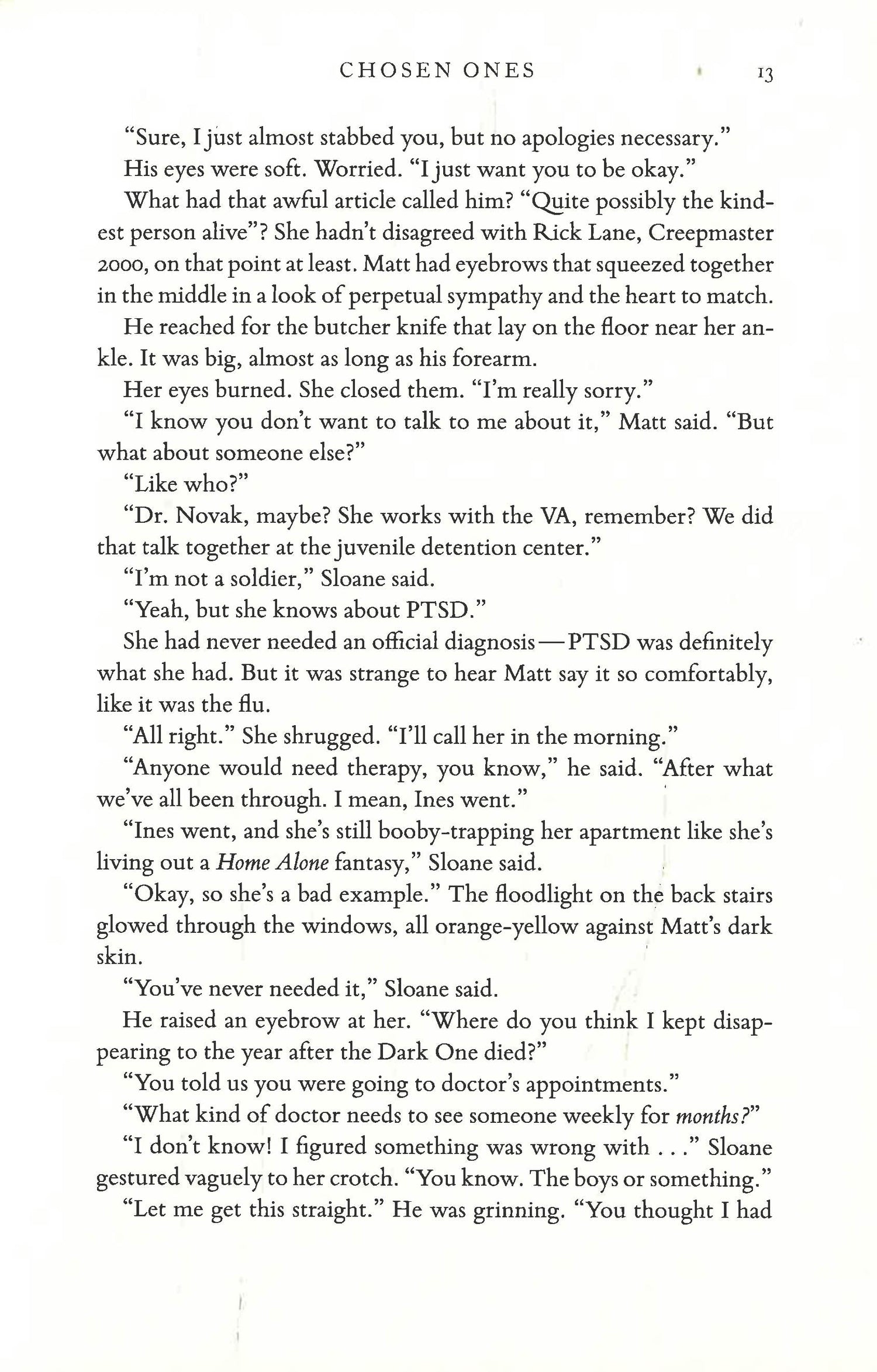 Of the five, Sloane has had the hardest time adjusting. Everyone else blames the PTSD—and her huge attitude problem—but really, she’s hiding secrets from them . . . secrets that keep her tied to the past and alienate her from the only four people in the world who understand her.