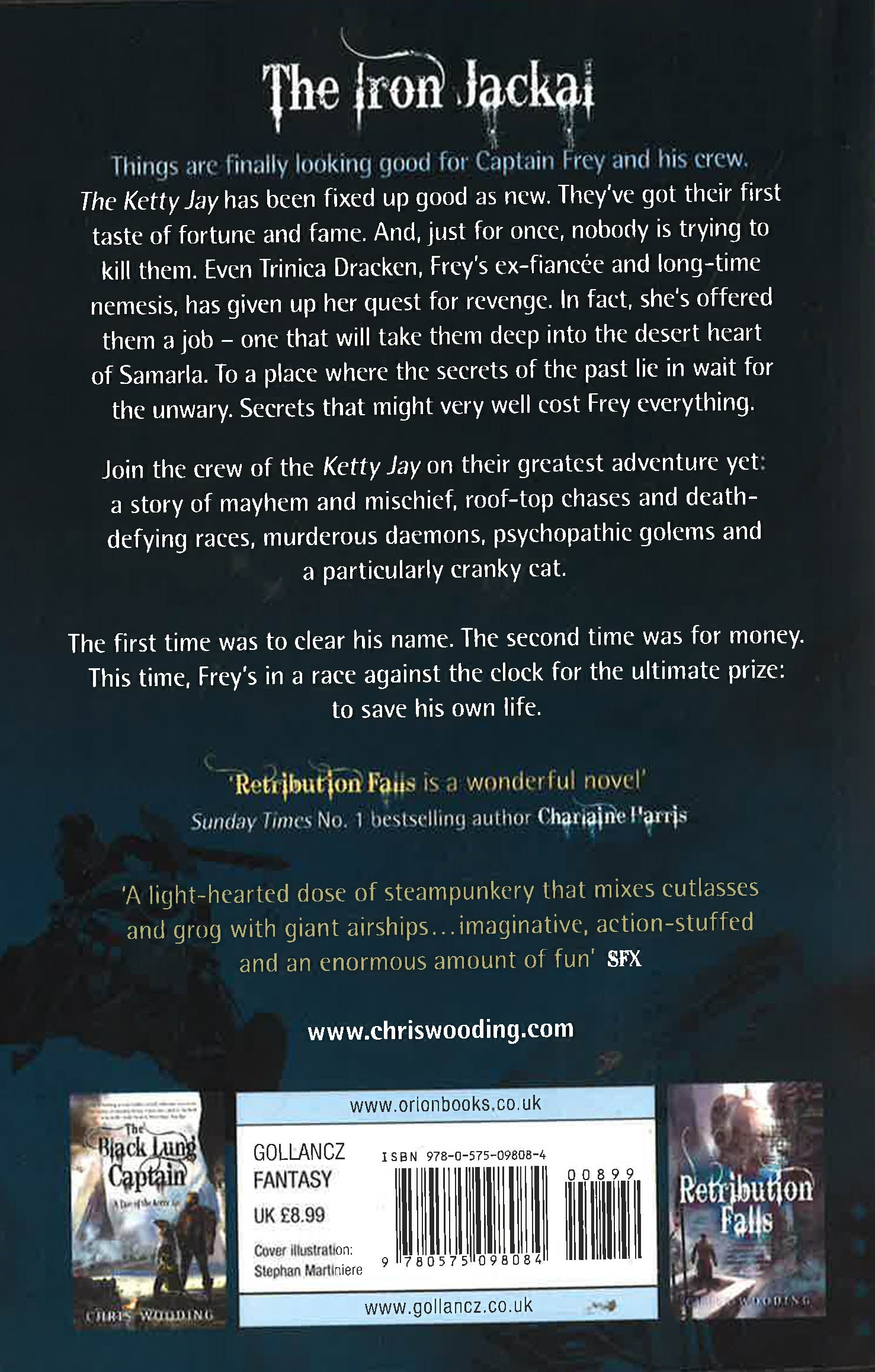 Join the crew of the Ketty Jay on their greatest adventure yet: a story of mayhem and mischief, rooftop chases and death-defying races, murderous daemons, psychopathic golems and a particularly cranky cat.