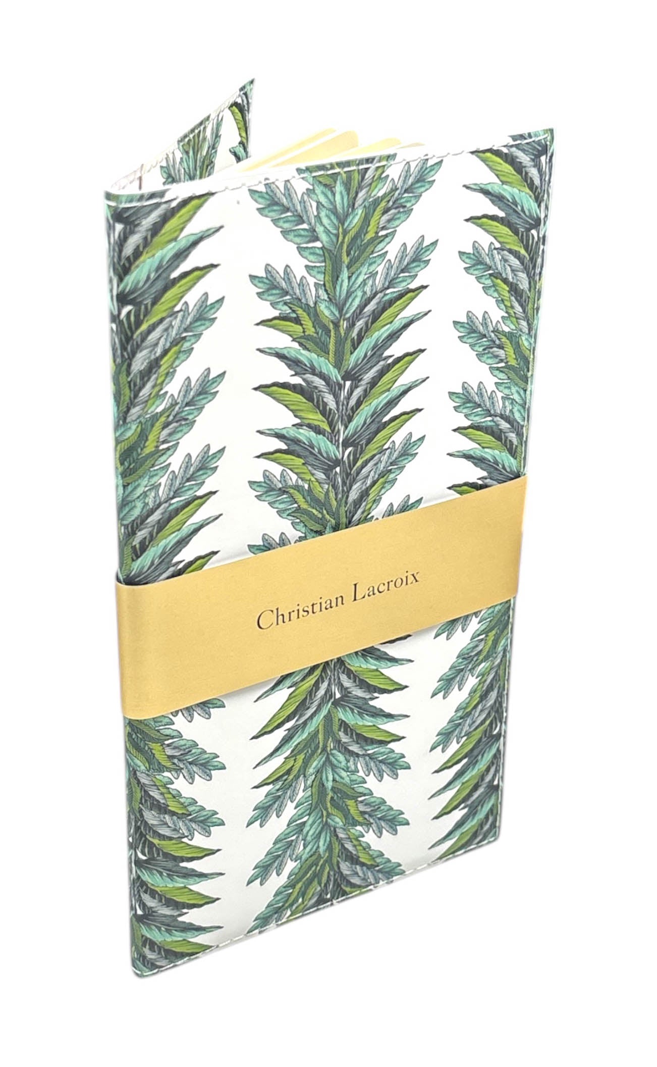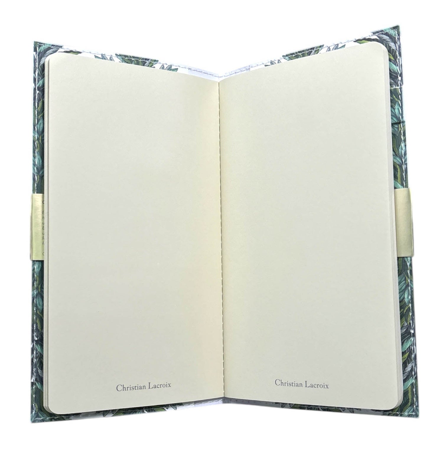Leather-like printed outer folio cover with foil stamping. 2 Large interior folio-style pockets. Card pocket on front interior & pen loop on back interior. Removable singer sewn notebook with 80 blank pages. Packaged with gold logo bellyband.