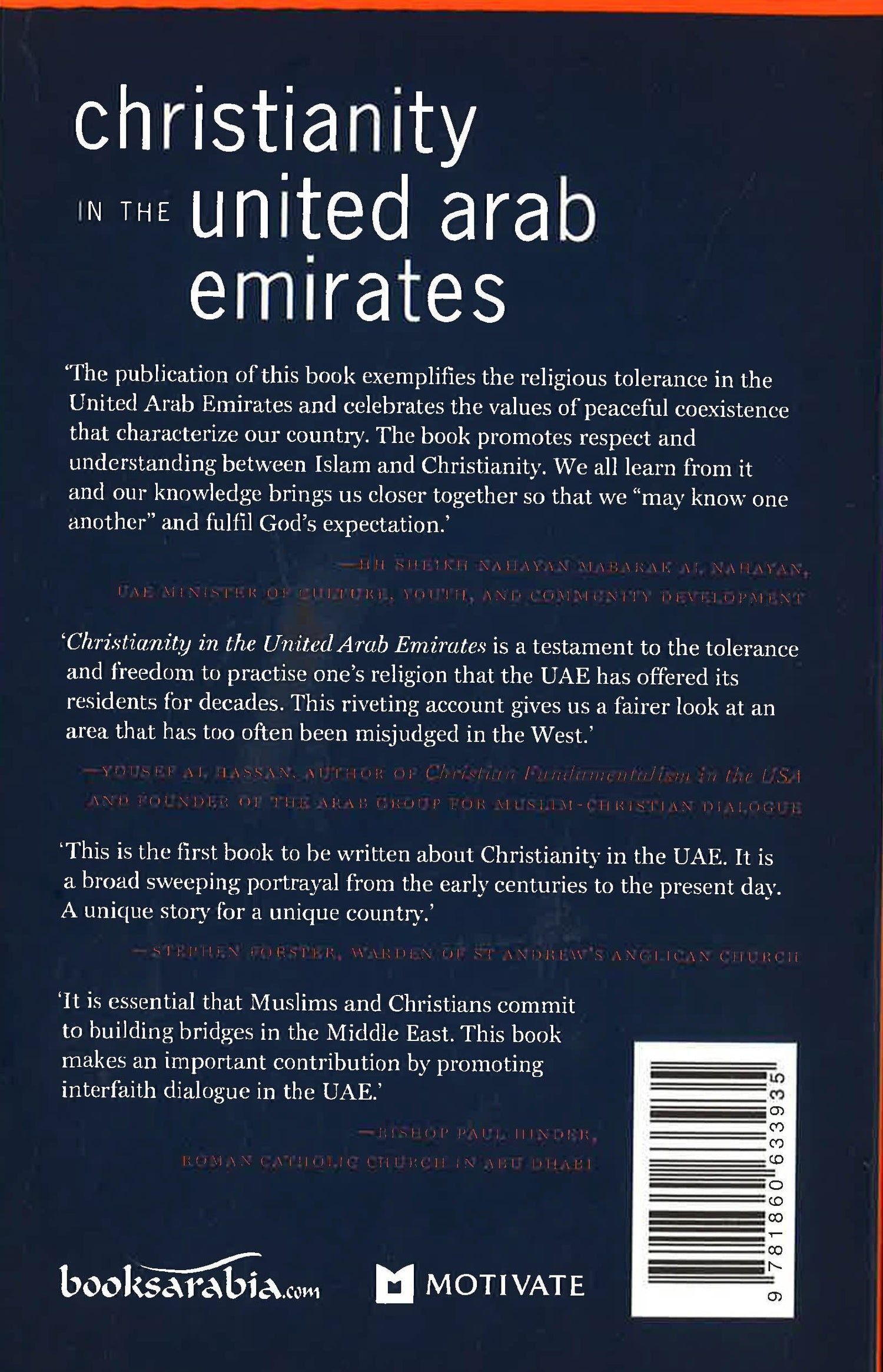 The Christian community has had a long and historical relationship with the UAE that has grown over time. Christianity in the UAE: Culture and Heritage honours this friendship and serves as a comprehensive introduction to the partnership between the communities. The book includes selected ancient photographs, pencil sketches of common Middle Eastern motifs and scripture verses from both the Holy Bible and the Holy Qur'an.