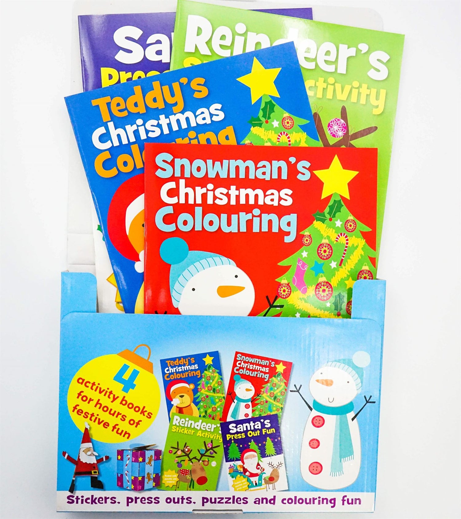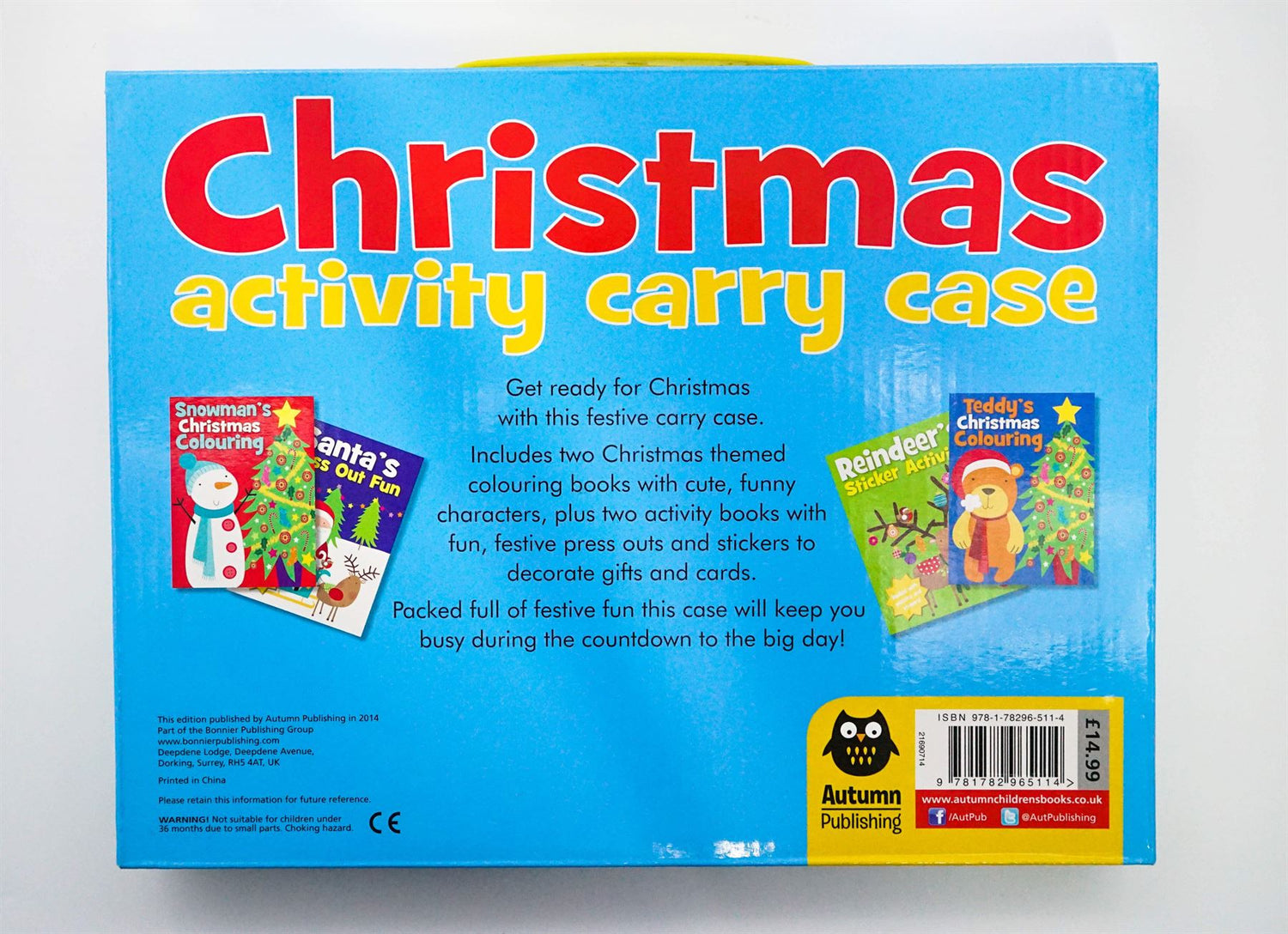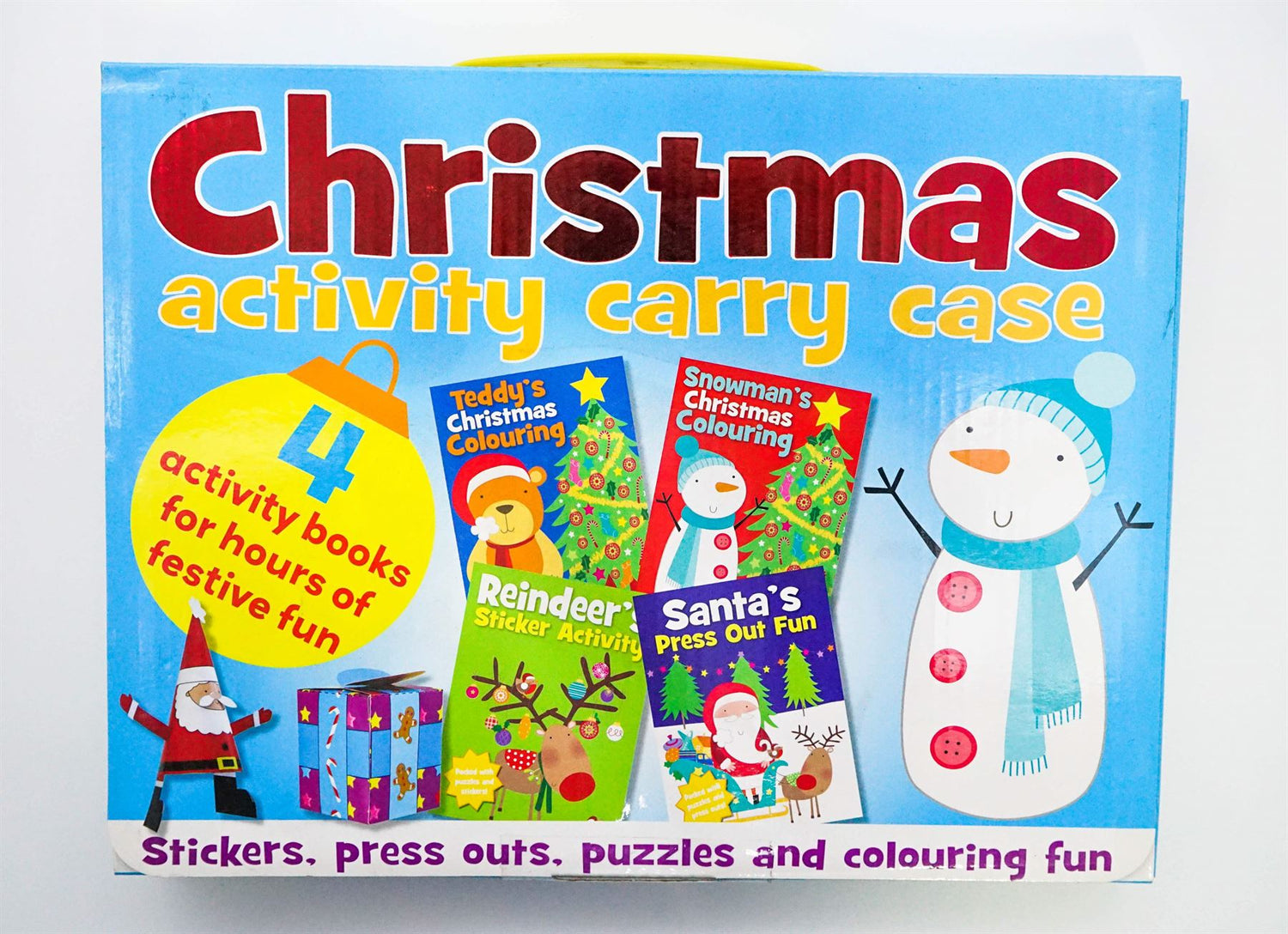 Get ready for Christmas with this festive carry case. Includes two Christmas themed colouring books with cute, funny characters, plus two activity books with fun, festive press outs and stickers decorate gifts and cards. Packed full of festive fun this case will keep you busy during the countdown to the big day!