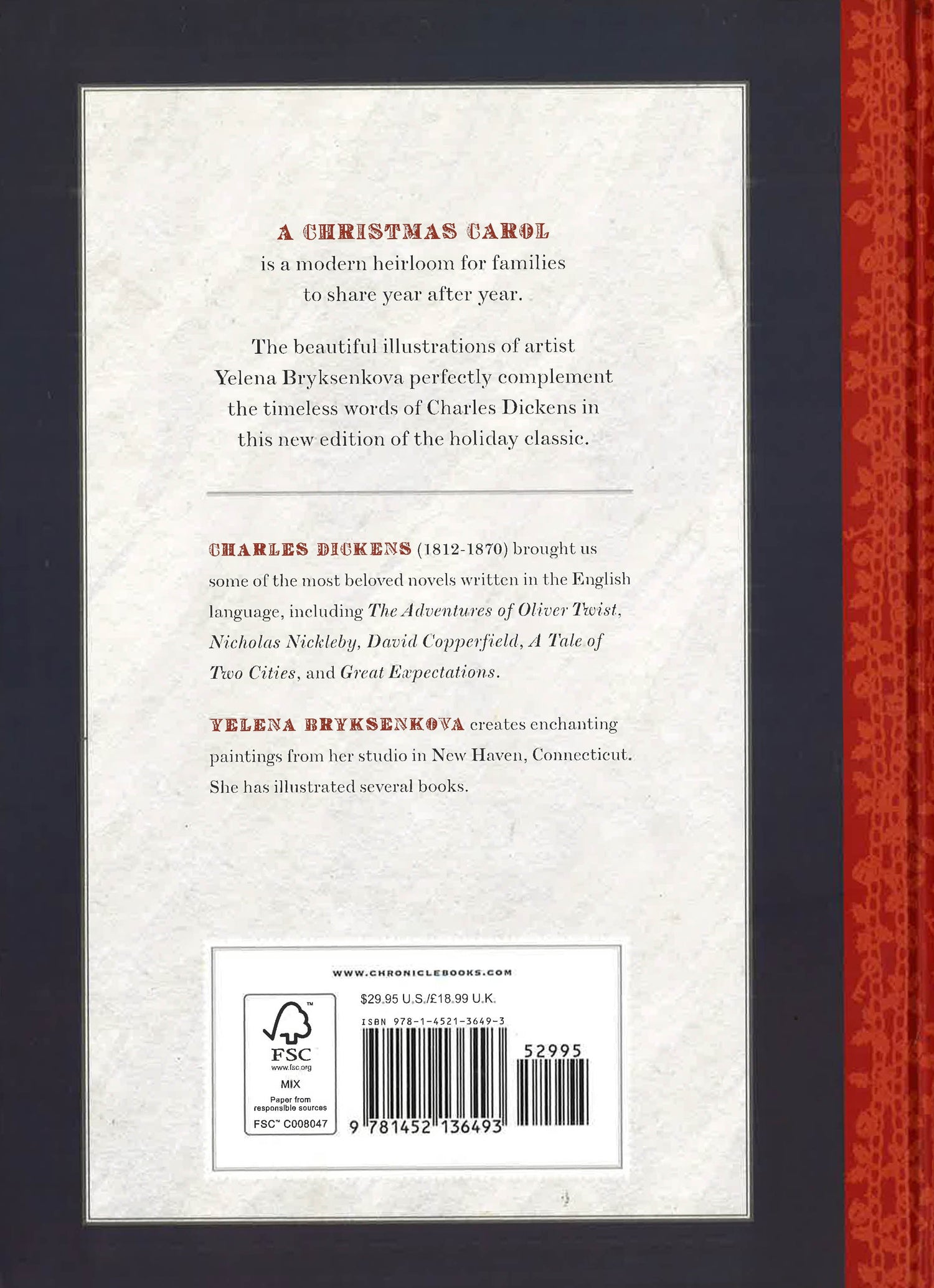 Charles Dickens's much loved tale of the Christmas spirit is beautifully presented in this deluxe newly illustrated edition. Contemporary artist and illustrator Yelena Bryksenkova has created enchanting watercolour artwork to accompany Dickens's classic story of Ebenezer Scrooge and the Ghosts of Christmas Past, Present and Future-evoking the magic of a Victorian Christmas, while at the same time infusing this timeless text with a touch of modern-day whimsy. With gilded page edges and a satin ribbon marker, this lavish keepsake volume is tomorrow's cherished family heirloom; an essential Christmas treasure to read around the fire, under the tree, or after the plum pudding year after year.