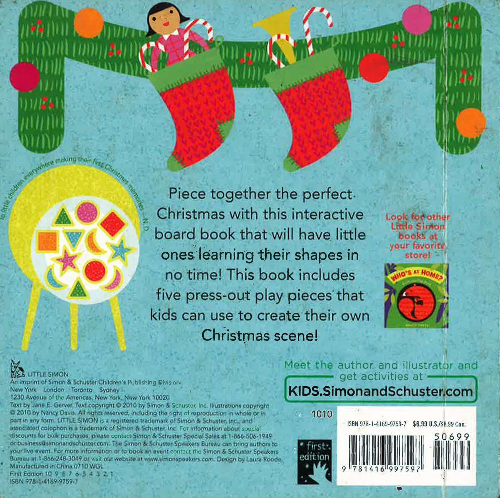 Piece together the perfect Christmas in this puzzle board book featuring shapes from Nancy Davis! This book includes 5 press-out play pieces that kids can use at the end to create their own Christmas scene! *This book may have minor shelfwear.