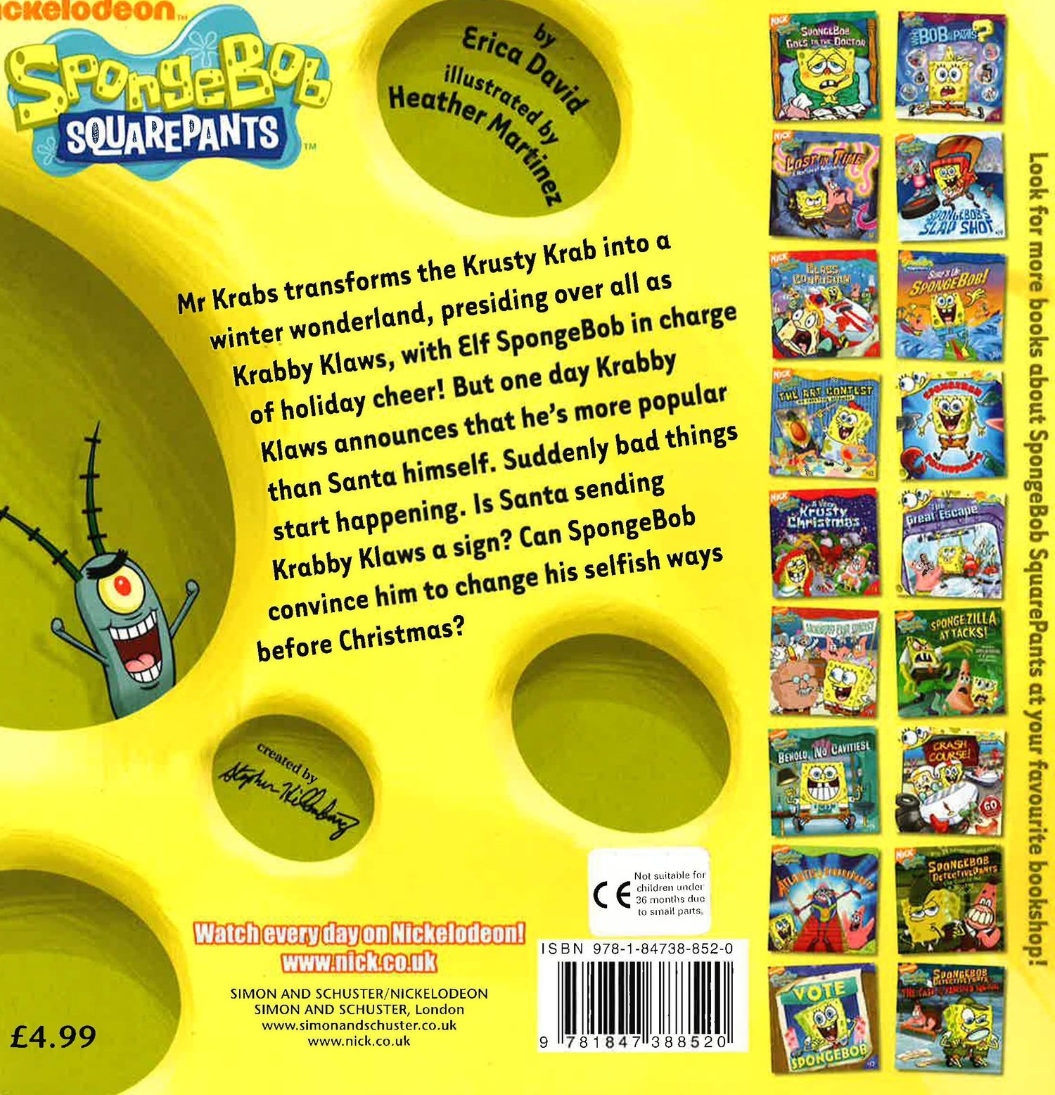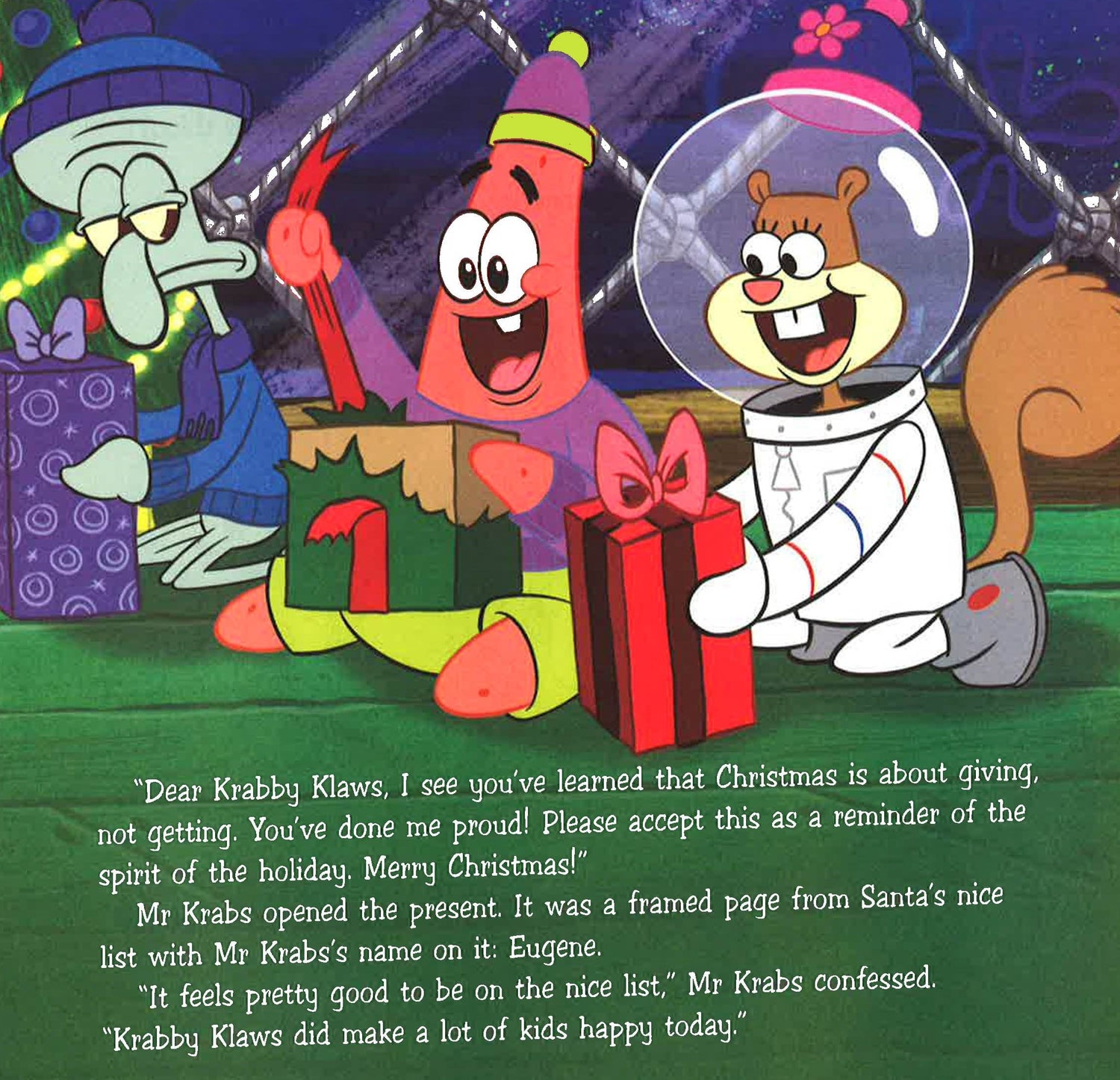 In a ploy to sell more Krabby Patties than ever before, Mr. Krabs transforms the Krusty Krab into a winter wonderland spectacular enough to rival even the famous North Pole. He presides over this holiday oasis as Krabby Klaws, with SpongeBob as head elf, offering up holiday activities for kids - all for a minor fee, of course. Soon Mr. Krabs gets too cocky. One day he announces that Krabby Klaws is probably more popular than Santa himself! SpongeBob is outraged, and begs Mr. Krabs to take it back. After all, if Santa is mad at Mr. Krabs, he won't get put on the 'nice' list! By strange coincidence, bad things suddenly start happening at the Krusty Krab. SpongeBob is sure that Santa is sending Mr. Krabs a sign. Can SpongeBob convince Krabby Klaws to change his selfish ways before Christmas?