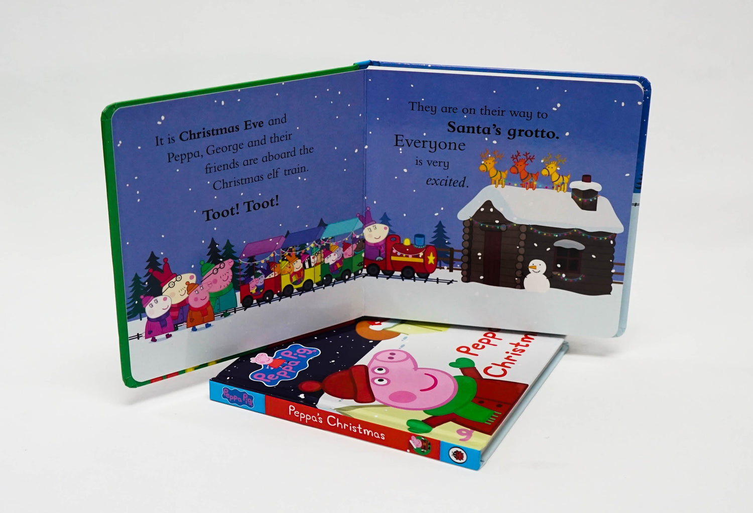 In Peppa's Christmas, Peppa, George, Mummy and Daddy Pig are getting ready for Christmas! Read along as they choose a Christmas tree, decorate the house and meet a surprise visitor.
