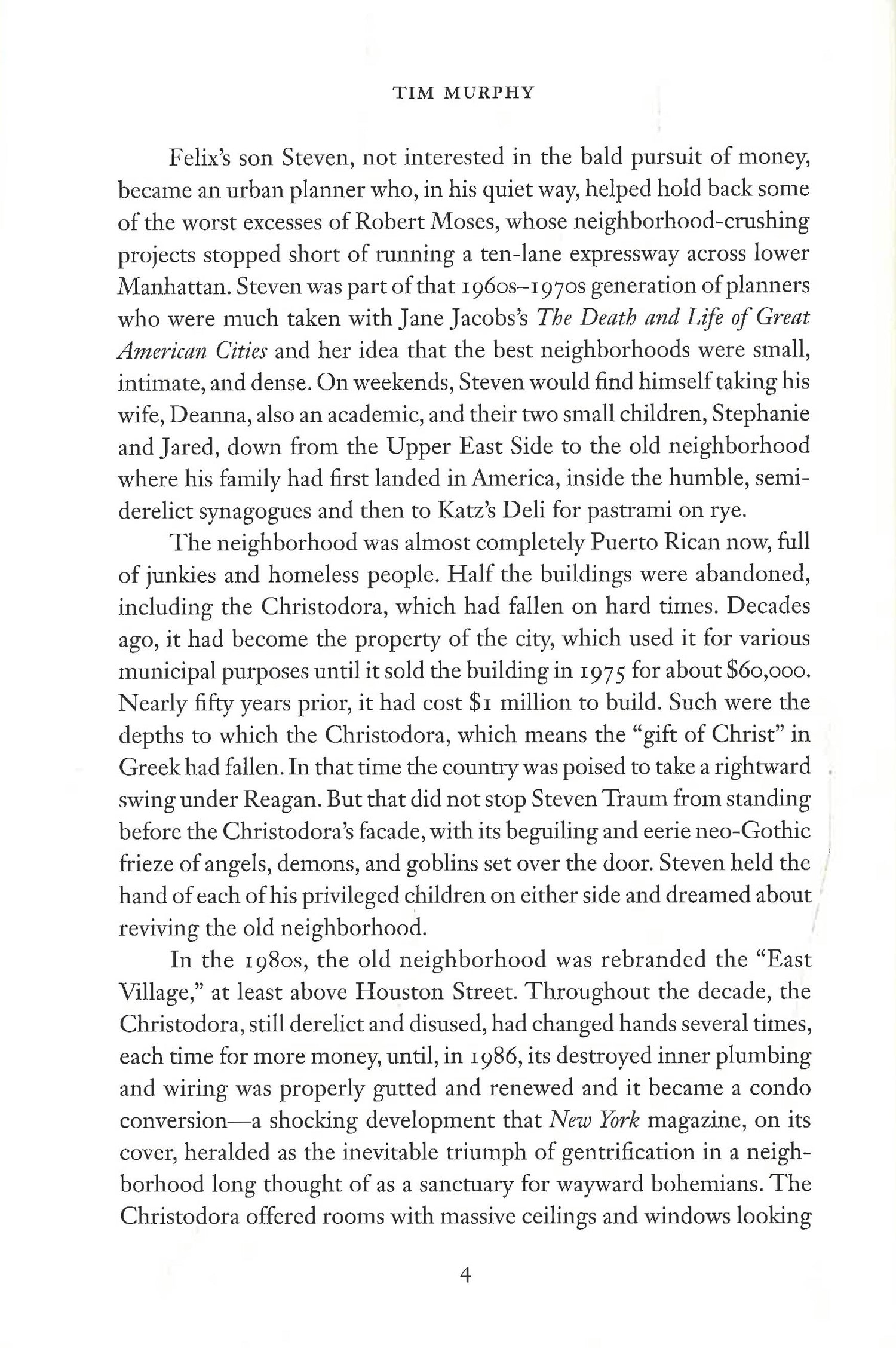 In this vivid and compelling novel, Tim Murphy follows a diverse set of characters whose fates intertwine in an iconic building in Manhattan's East Village, the Christodora. The Christodora is home to Milly and Jared, a privileged young couple with artistic ambitions. Their neighbor, Hector, a Puerto Rican gay man who was once a celebrated AIDS activist but is now a lonely addict, becomes connected to Milly and Jared's lives in ways none of them can anticipate. Meanwhile, Milly and Jared's adopted son Mateo grows to see the opportunity for both self-realization and oblivion that New York offers. As the junkies and protestors of the 1980s give way to the hipsters of the 2000s and they, in turn, to the wealthy residents of the crowded, glass-towered city of the 2020s, enormous changes rock the personal lives of Milly and Jared and the constellation of people around them. Moving kaleidoscopically from the Tompkins Square Riots and attempts by activists to galvanize a true response to the AIDS epidemic, to the New York City of the future, Christodora recounts the heartbreak wrought by AIDS, illustrates the allure and destructive power of hard drugs, and brings to life the ever-changing city itself.
