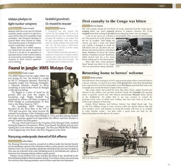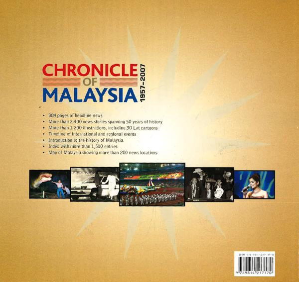 This is a superbly illustrated, comprehensive history of Malaysia's first 50 years. This superbly illustrated volume captures the full dramatic sweep of Malaysia's history, taking the reader on a whirlwind tour of the nation's first 50 years.Organised in chronological order, with each year's coverage starting with a succinct summary of its key events, "Chronicle of Malaysia" covers not only the nation's major political and economic events, but also the more human side of Malaysia - sports, fashion, music, the arts, architecture, lifestyle, disasters, crime and social scenes - giving readers the broadest possible coverage.It offers readability of a newspaper. It features highly visual style of presentation. It is based on research of over 18,000 issues of Malaysian newspapers plus hundreds of magazines, as well as foreign news media. It also features specially commissioned cartoons by renowned Malaysian cartoonist Lat.