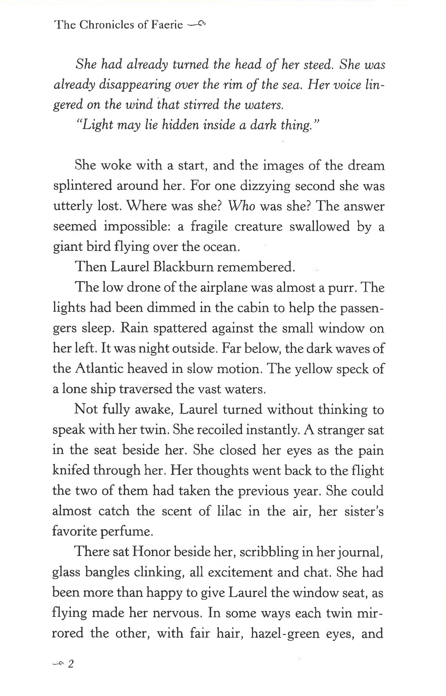 Seventeen-year-old Laurel returns to her grandparents' home in Ireland, where she encounters "the roly-poly man," a cluricaun who sets Laurel on a quest to free her twin sister, thought to be dead, to live with her lover in the legendary world of Faerie.